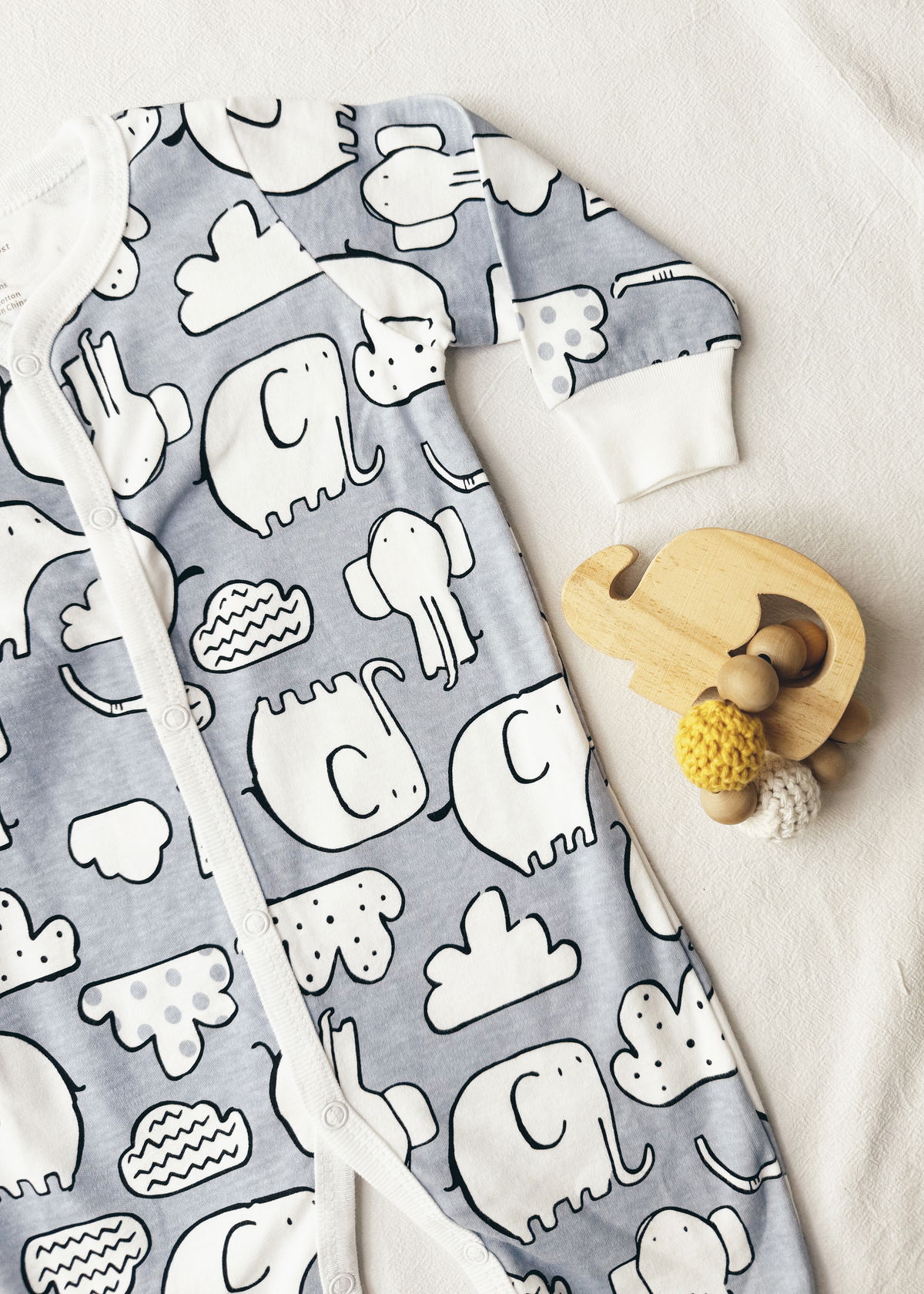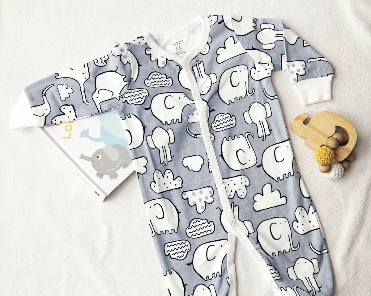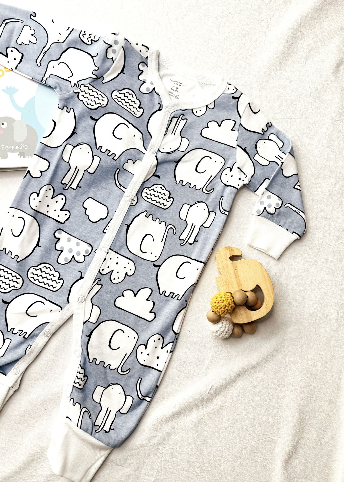 Enterito de algodón, mangas largas, con botones a presión en el frente y piernas para hacer mucho más práctico el cambiado del pañal. Este modelito viene con puños en la terminación de los pies para que queden libres.