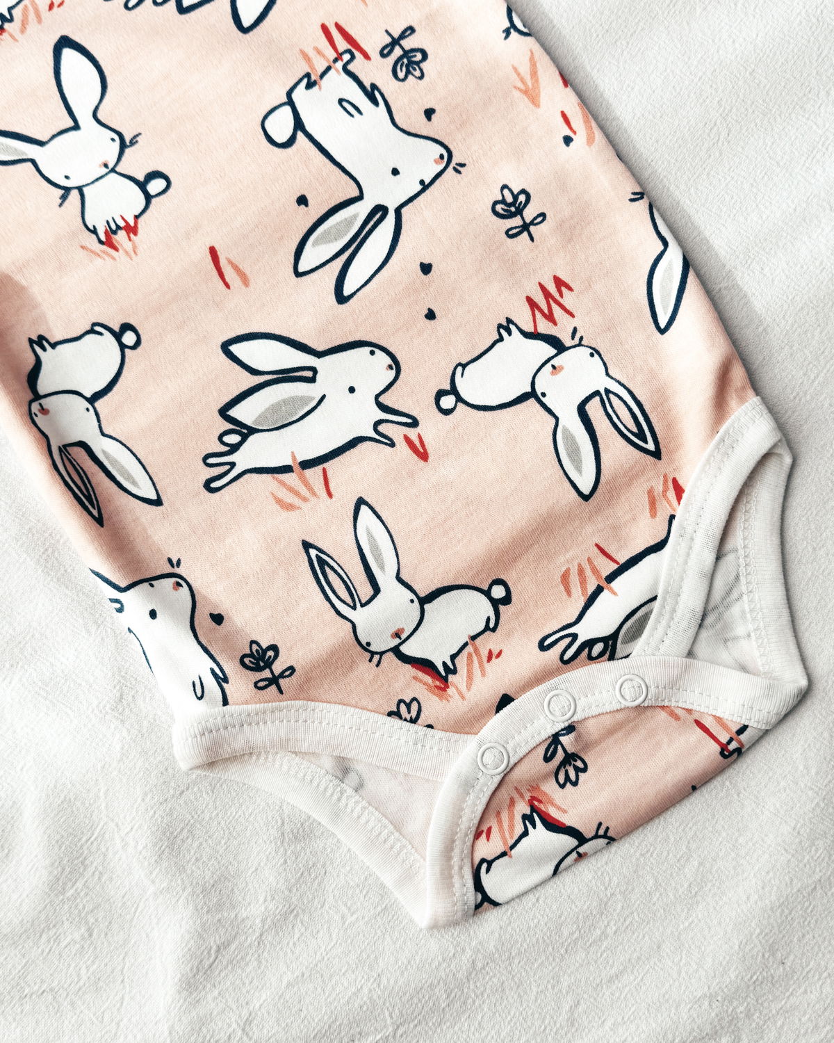 Body m/l en tono rosa con conejitos bebé, este hermoso y tierno modelo para que sea un outfit muy coquetee.