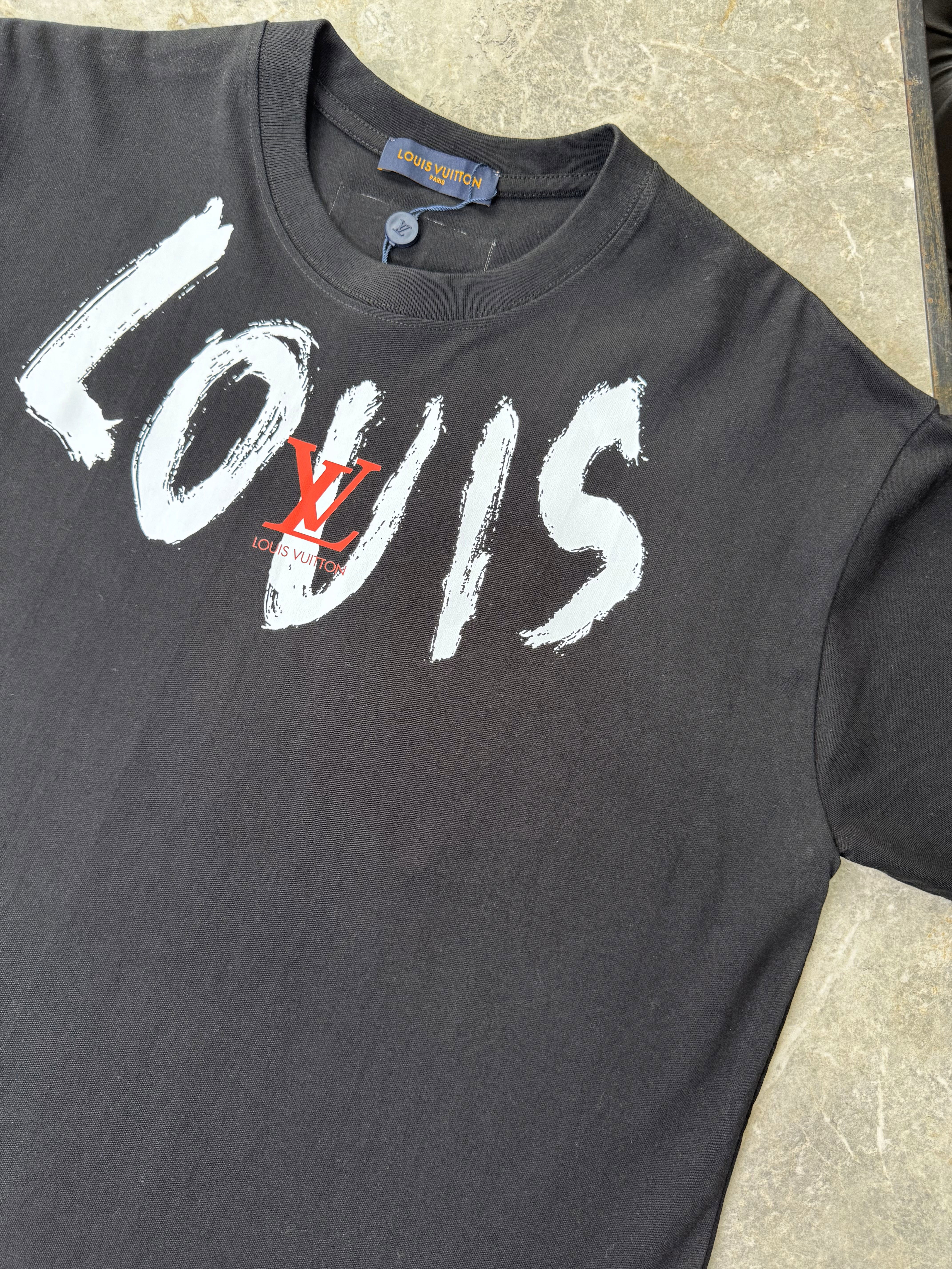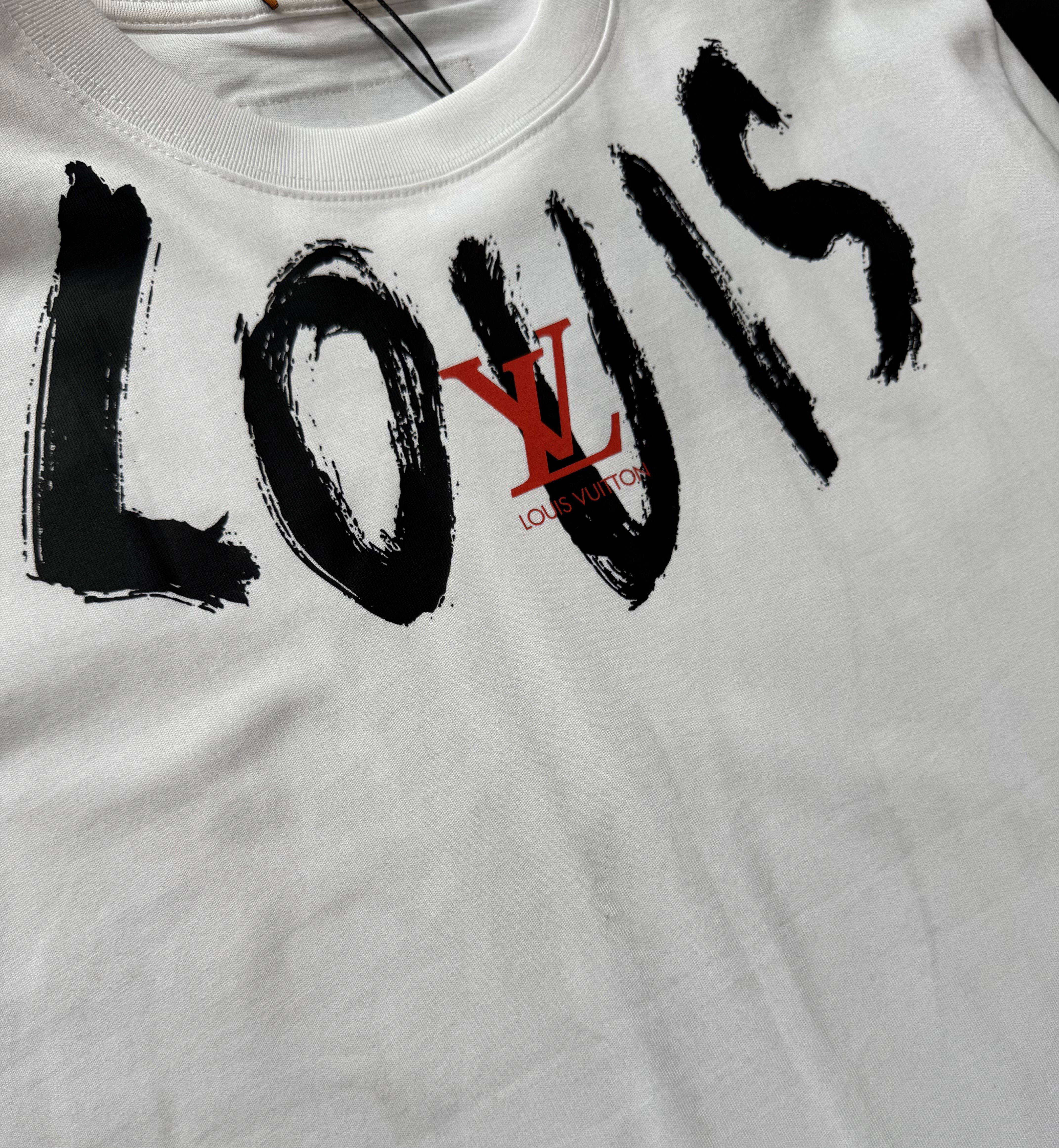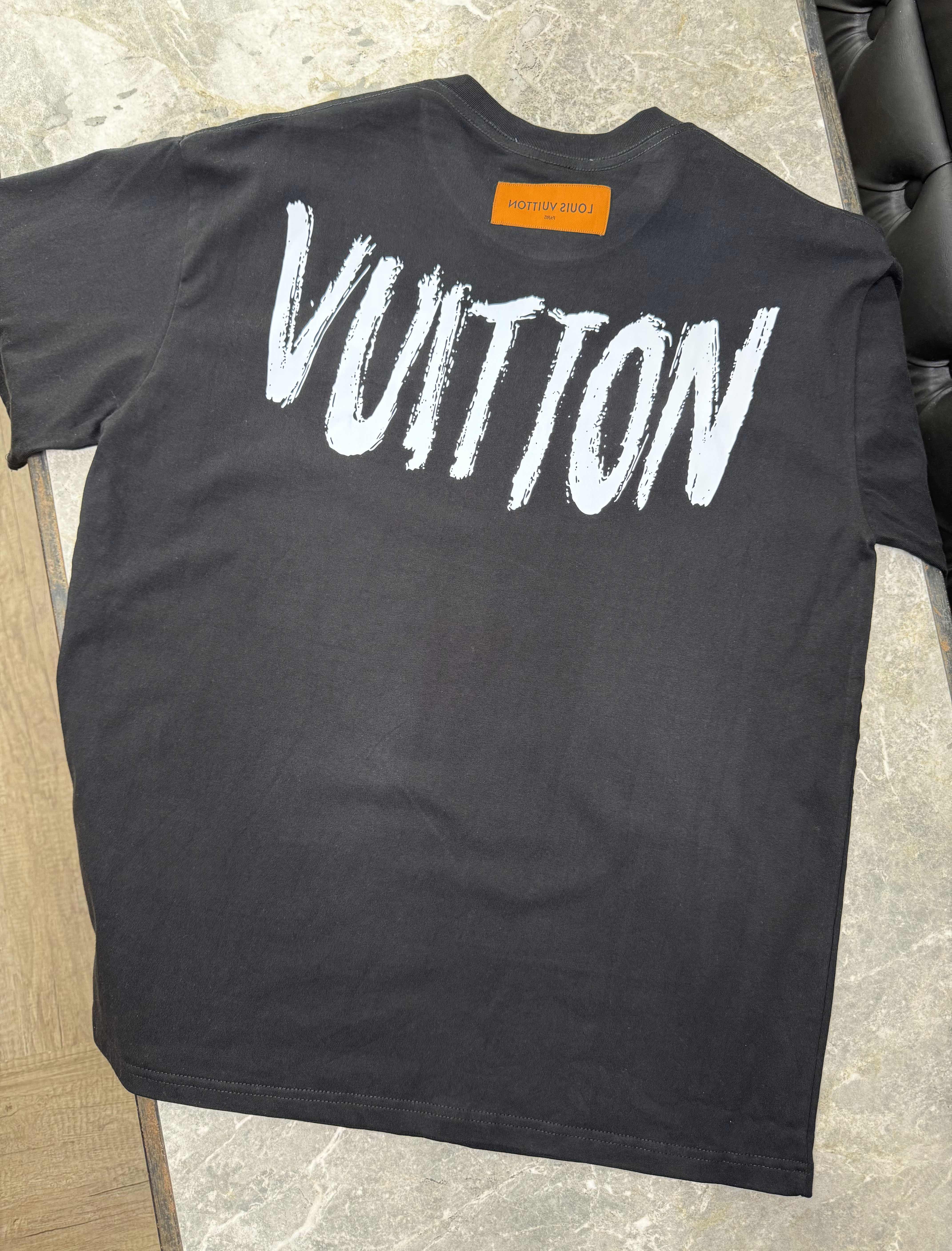 Esta remera combina el ADN clásico de LV con una estética más disruptiva y moderna inspirada en el street art. El estampado frontal y trasero estilo pincelada crea un contraste visual fuerte, con el logo LV en rojo al centro aportando un detalle icónico y llamativo.
