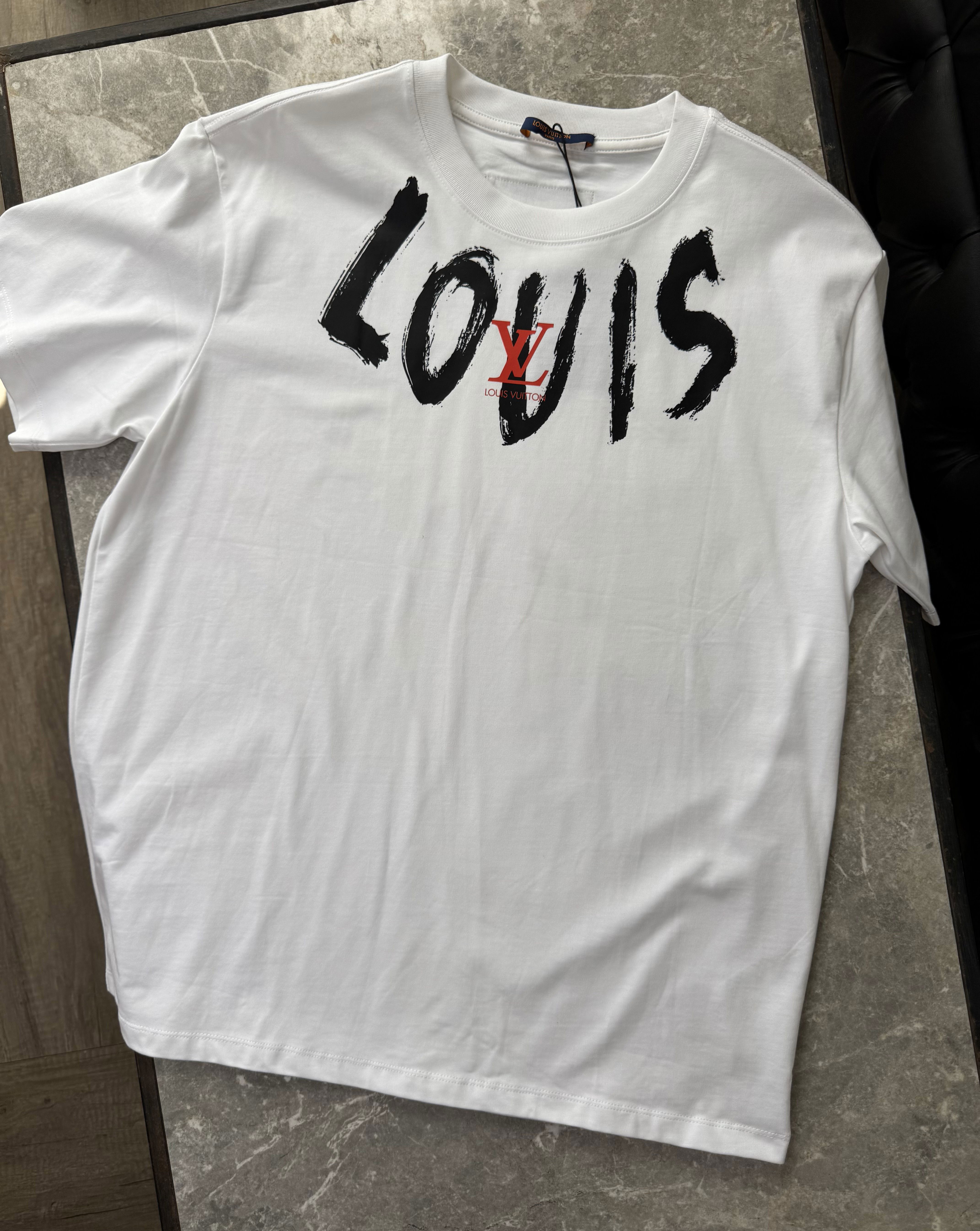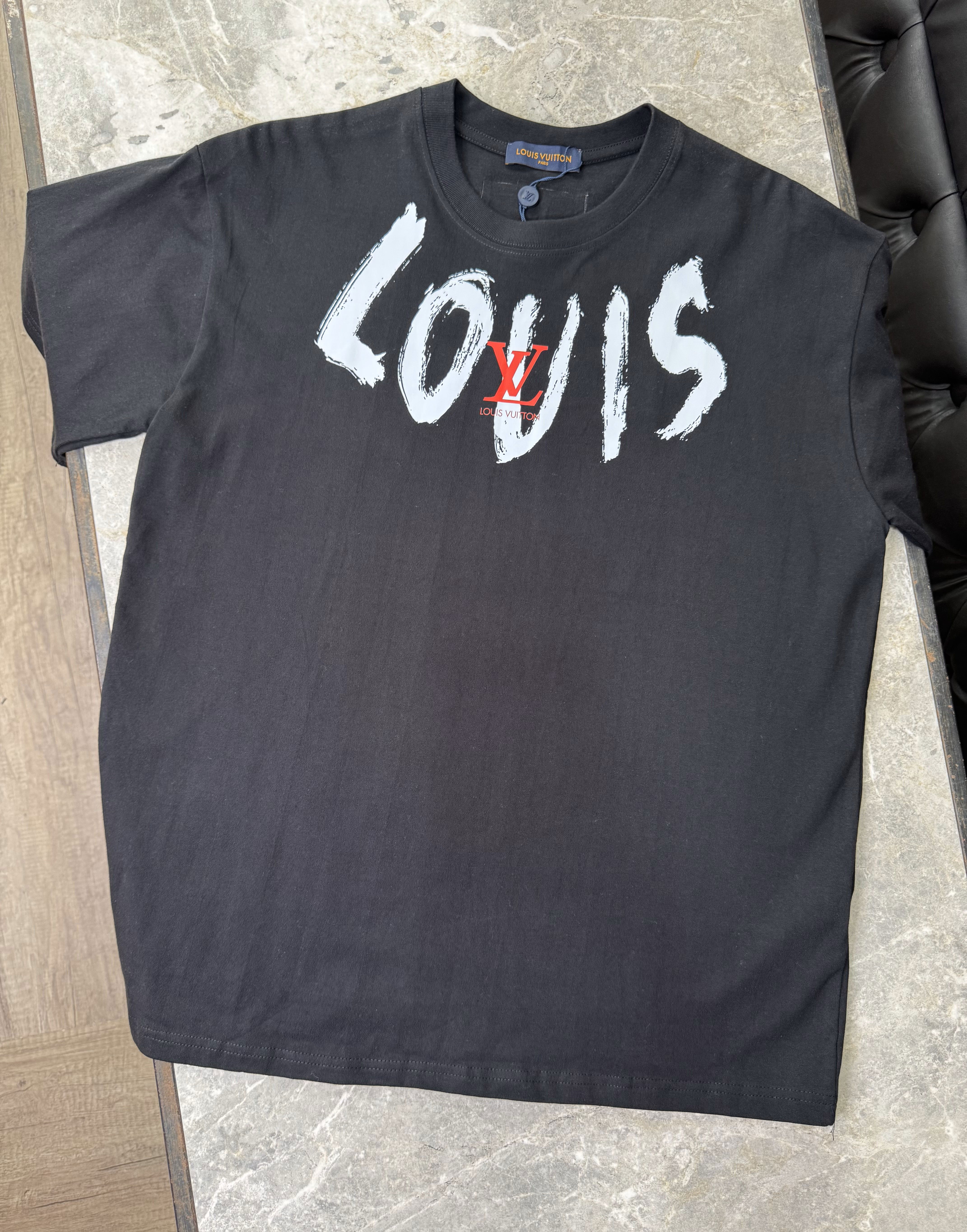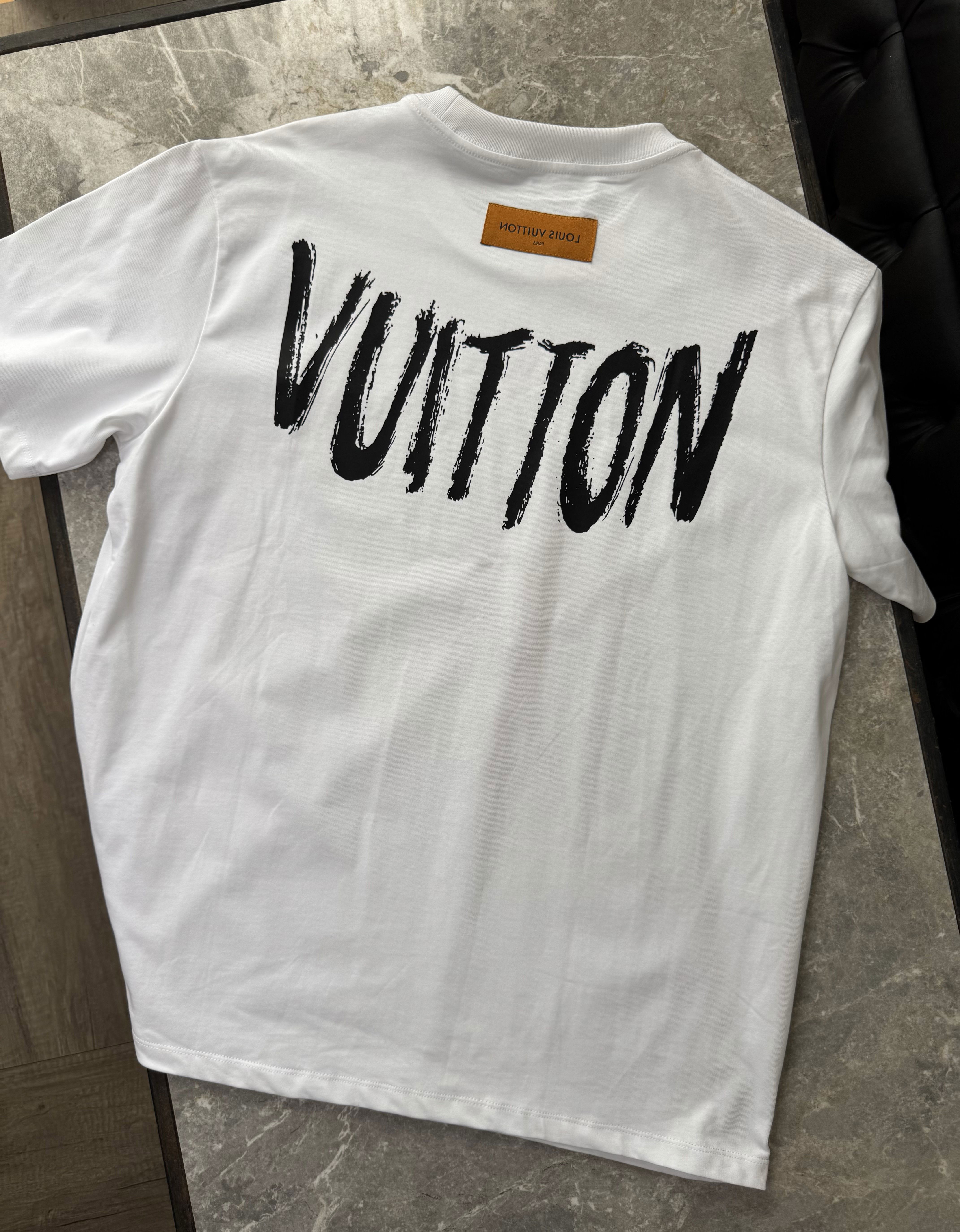 Esta remera combina el ADN clásico de LV con una estética más disruptiva y moderna inspirada en el street art. El estampado frontal y trasero estilo pincelada crea un contraste visual fuerte, con el logo LV en rojo al centro aportando un detalle icónico y llamativo.