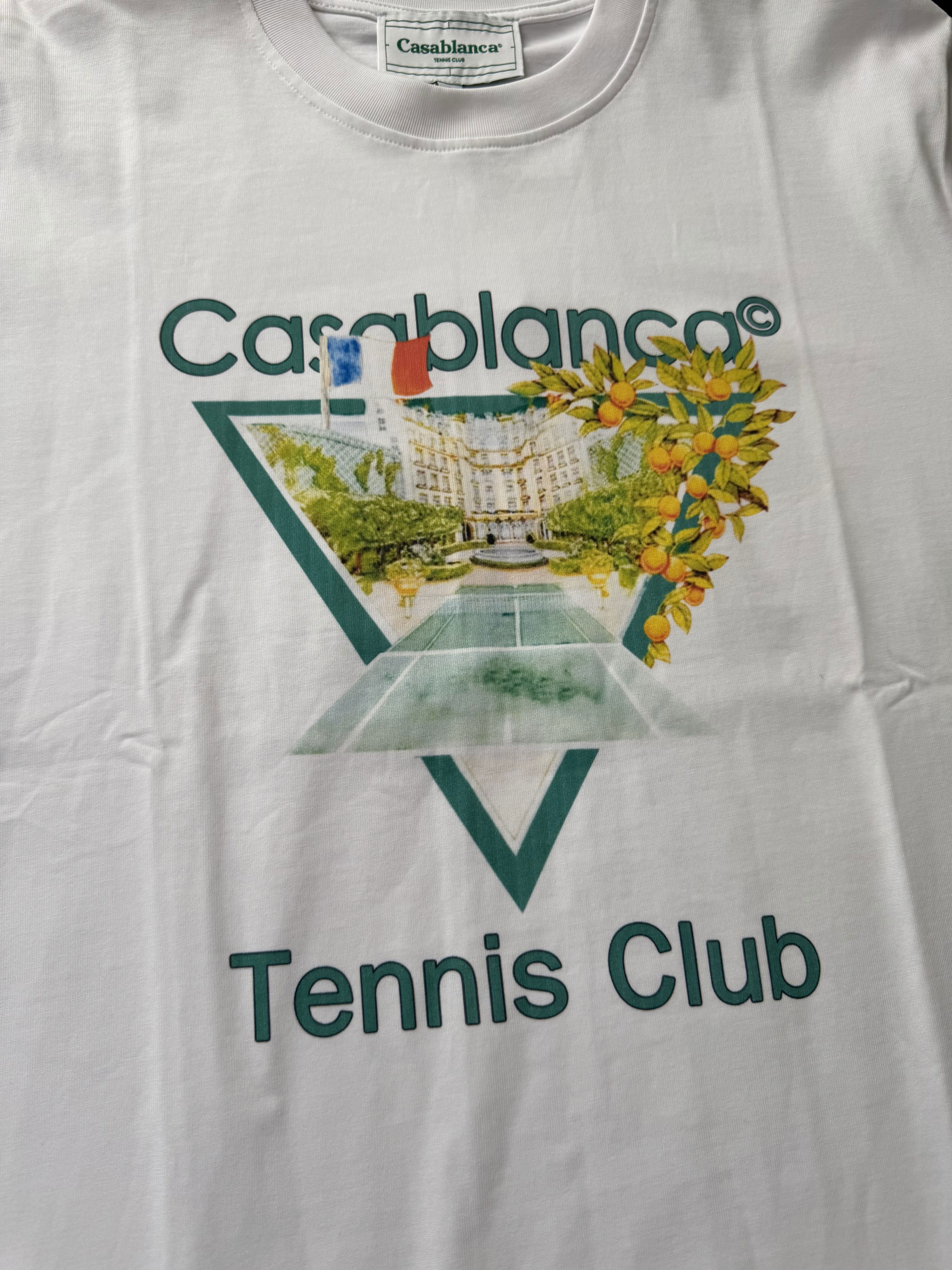 Esta remera refleja el estilo característico de CB, fusionando inspiración deportiva con detalles artísticos. El estampado frontal recrea una escena con cancha de tenis, arquitectura clásica, cítricos y bandera francesa, logrando un diseño fresco, elegante y con aire vacation mode.