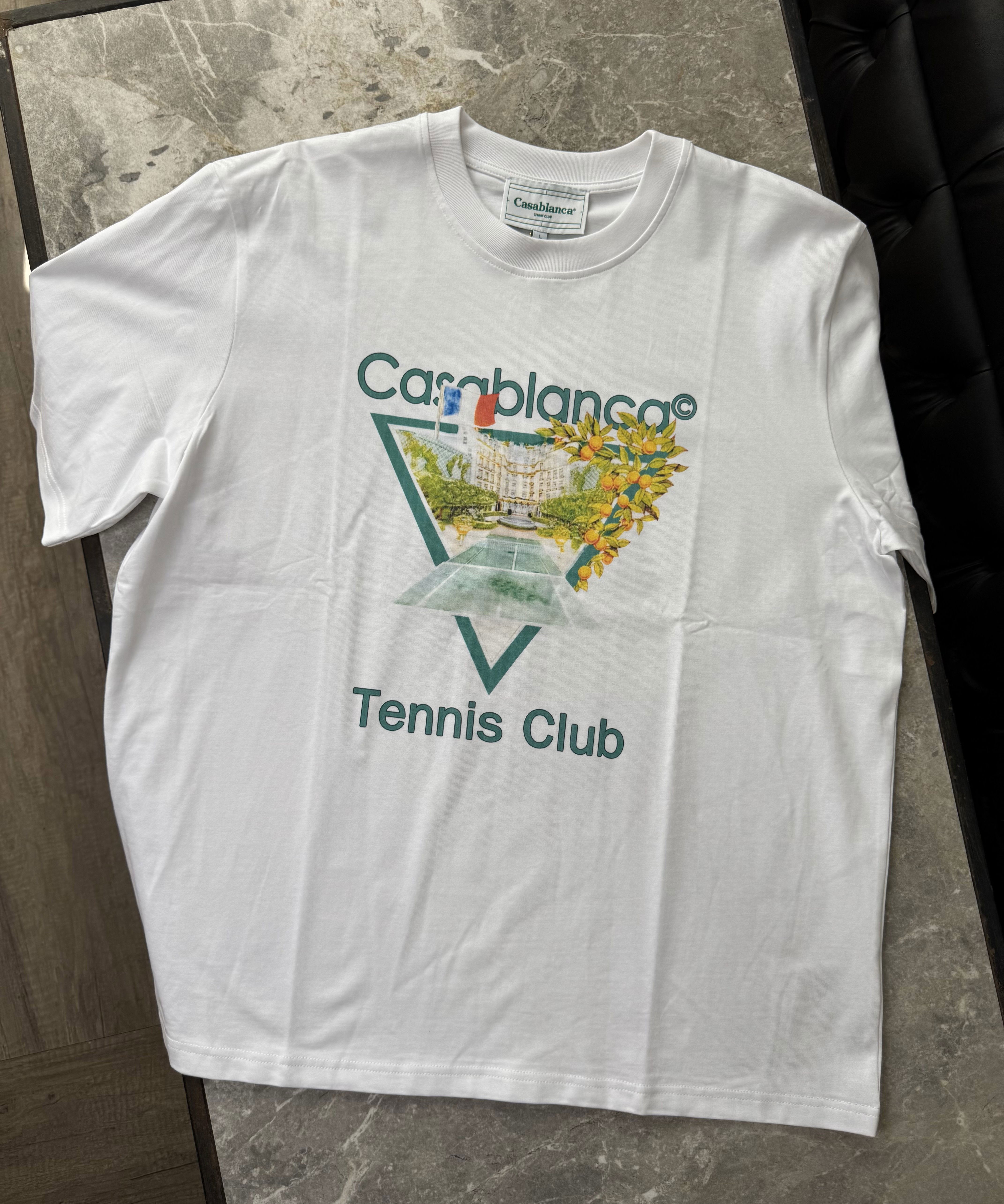Estampado frontal “Tennis Club” con estilo artístico