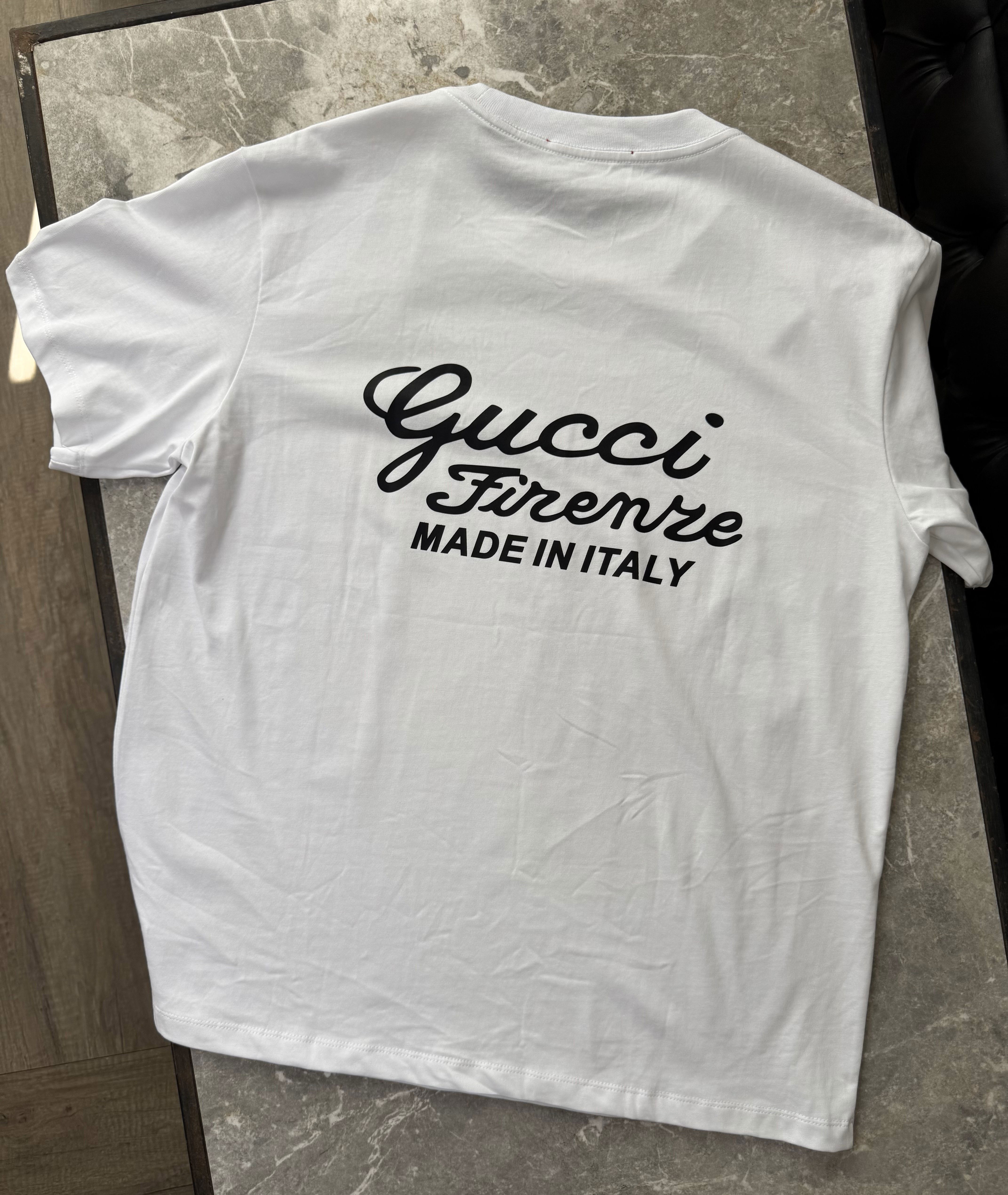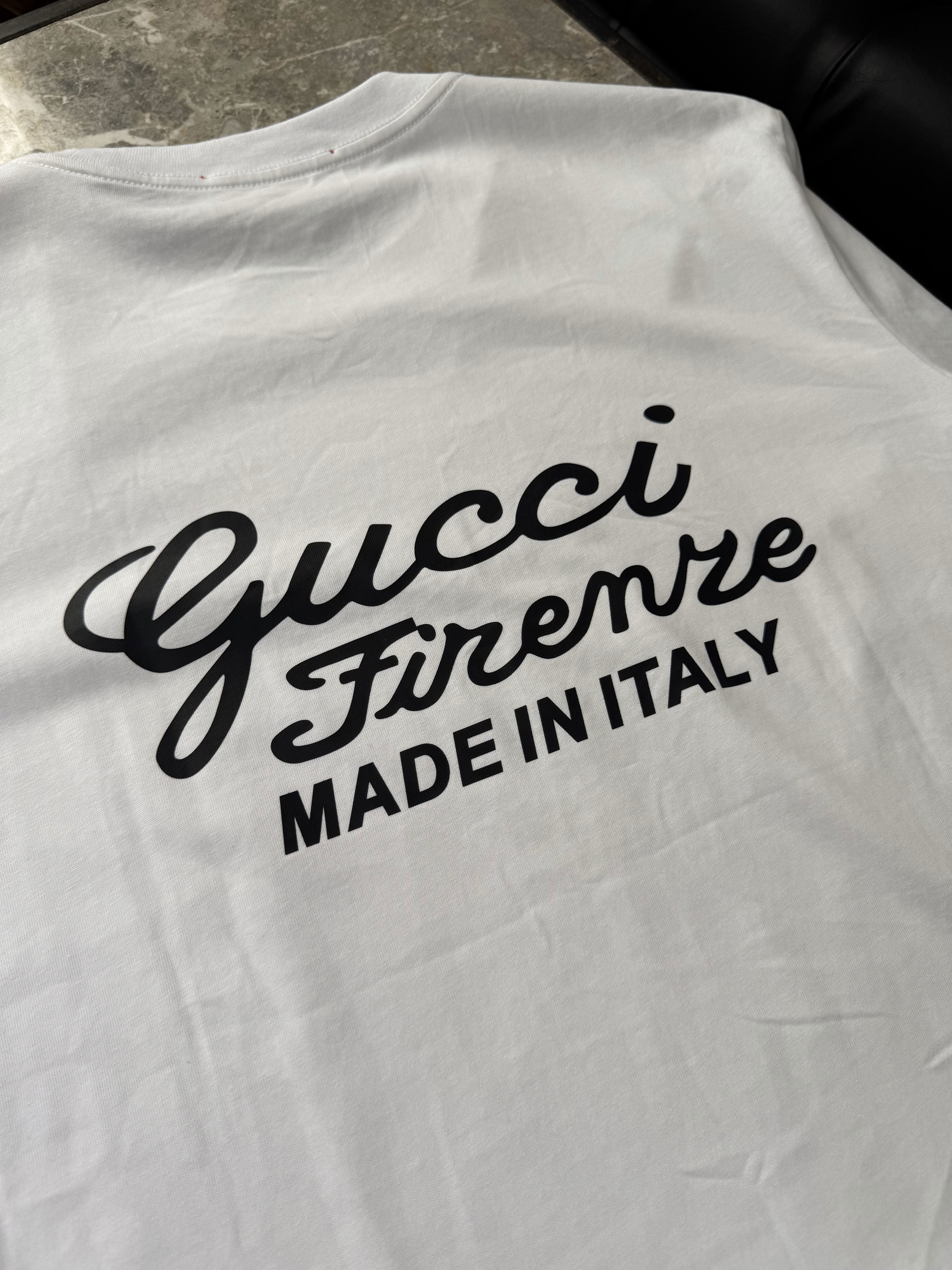 Esta remera lleva una estética elegante y limpia, con la inscripción GG Firenze – Made in Italy en el frente, logrando un guiño sutil al origen de la casa italiana. En la espalda el diseño cobra más presencia con la misma tipografía bold script en formato ampliado, creando un balance perfecto entre minimalismo y statement visual.
