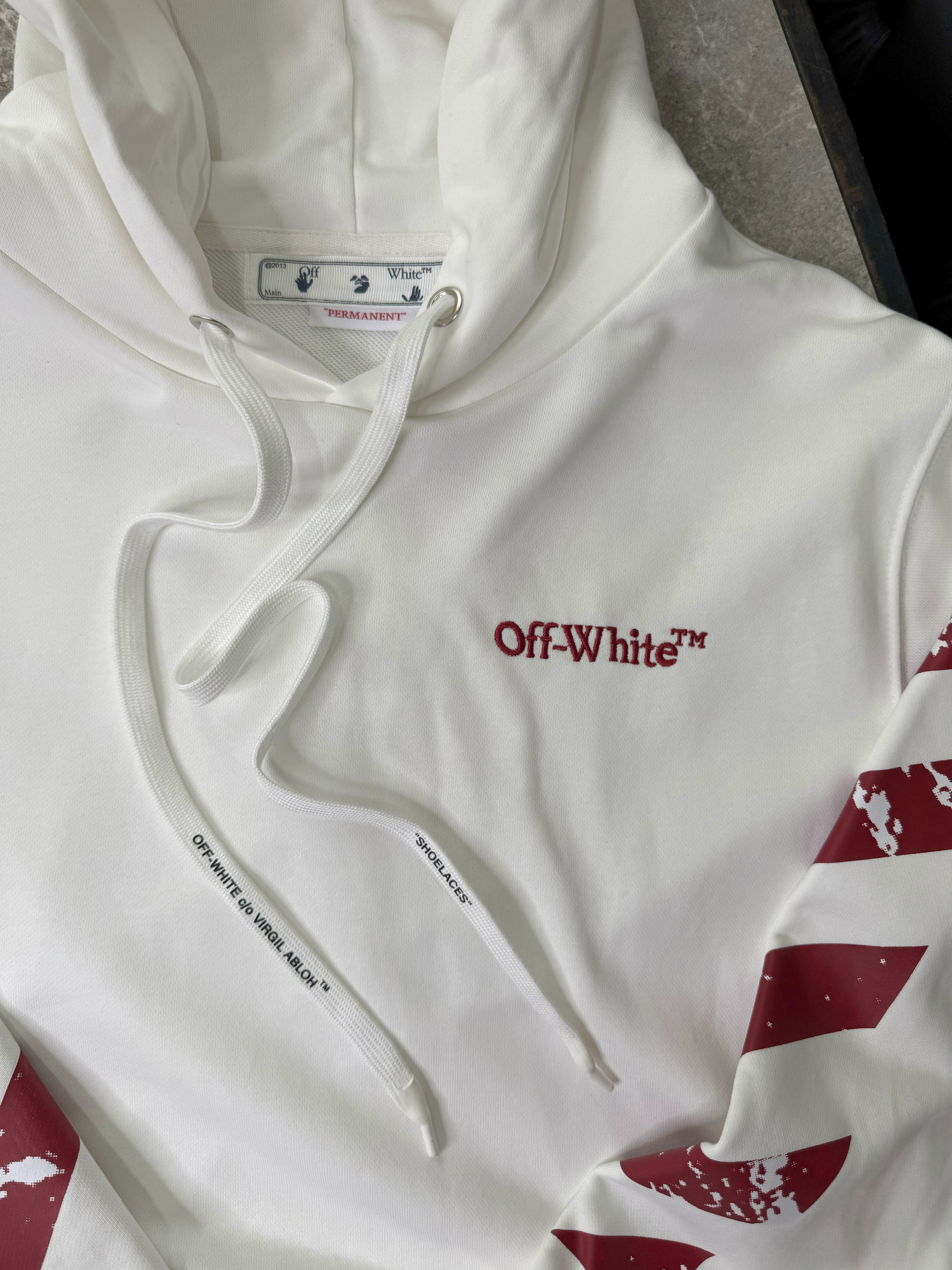 Un diseño pensado para destacar. Este buzo en color blanco combina líneas limpias con detalles gráficos en rojo efecto desgastado, logrando una pieza llamativa sin perder la elegancia minimal característica de la marca.