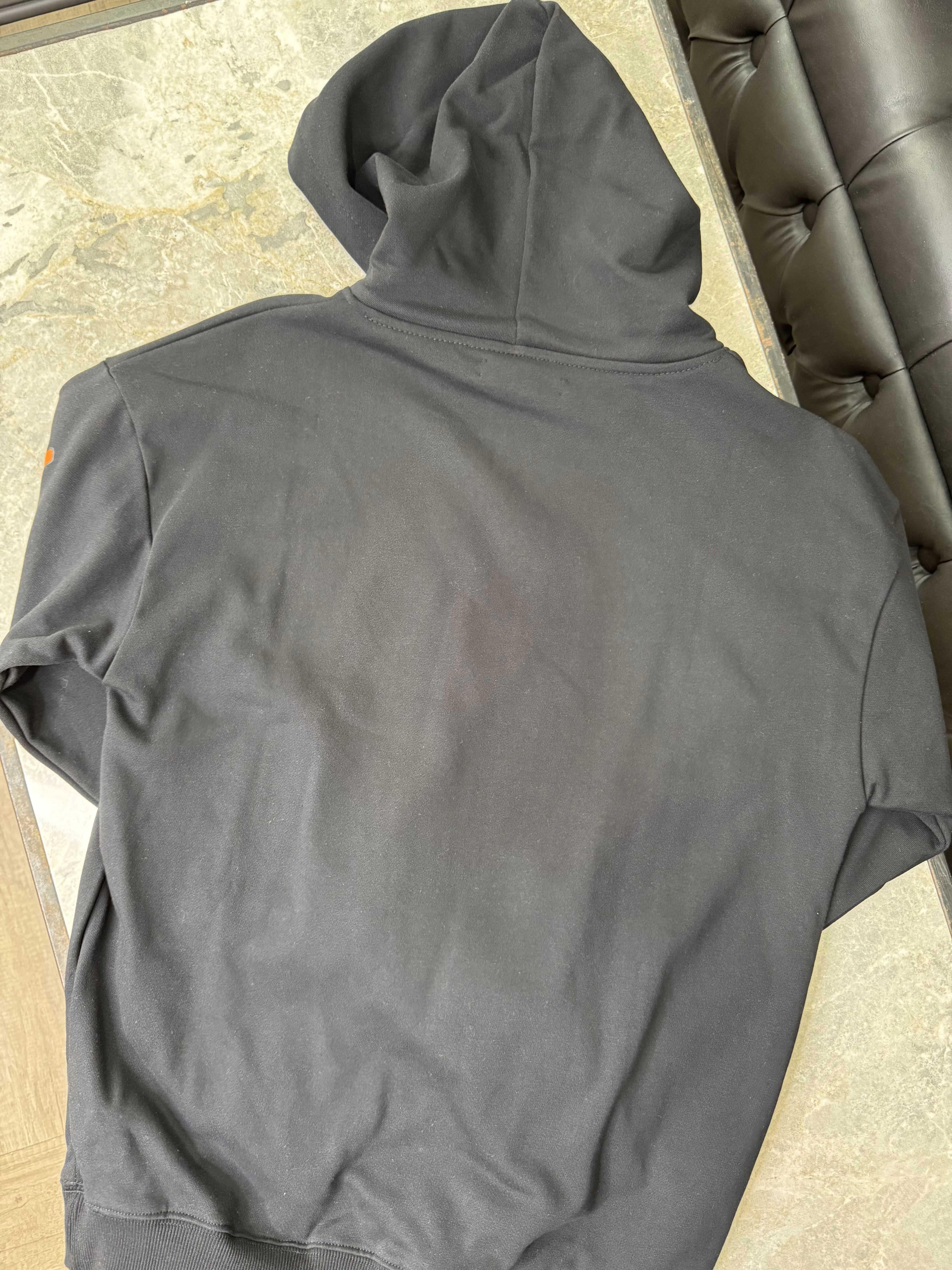 Un diseño pensado para destacar sin esforzarse. Este buzo AMR en color negro combina estilo minimalista con detalles gráficos icónicos en color naranja quemado, logrando un look moderno con impronta luxury.