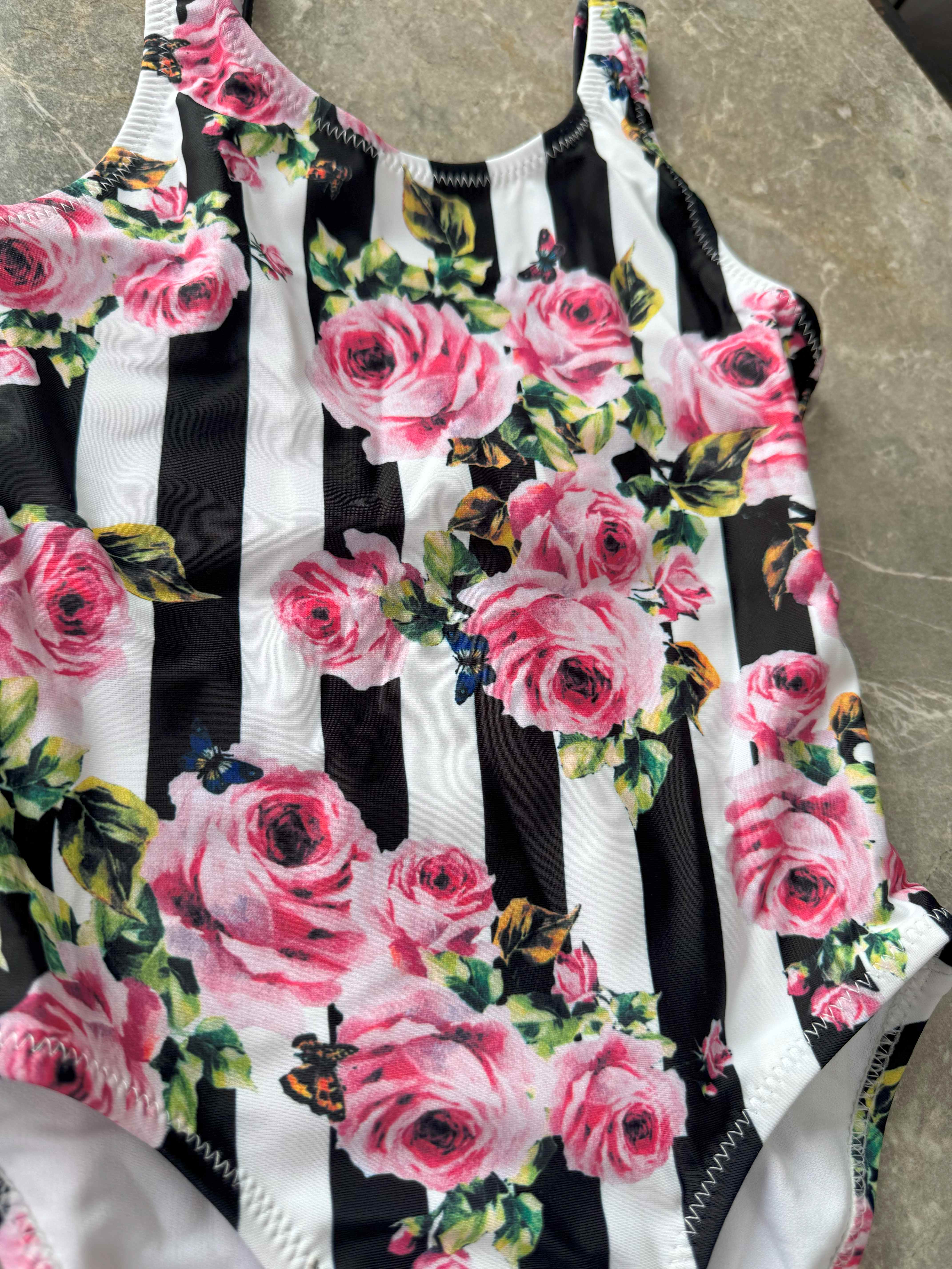 ✨ Malla Enteriza Rayas & Rosas DG – Estilo, color y personalidad en una sola prenda ✨
