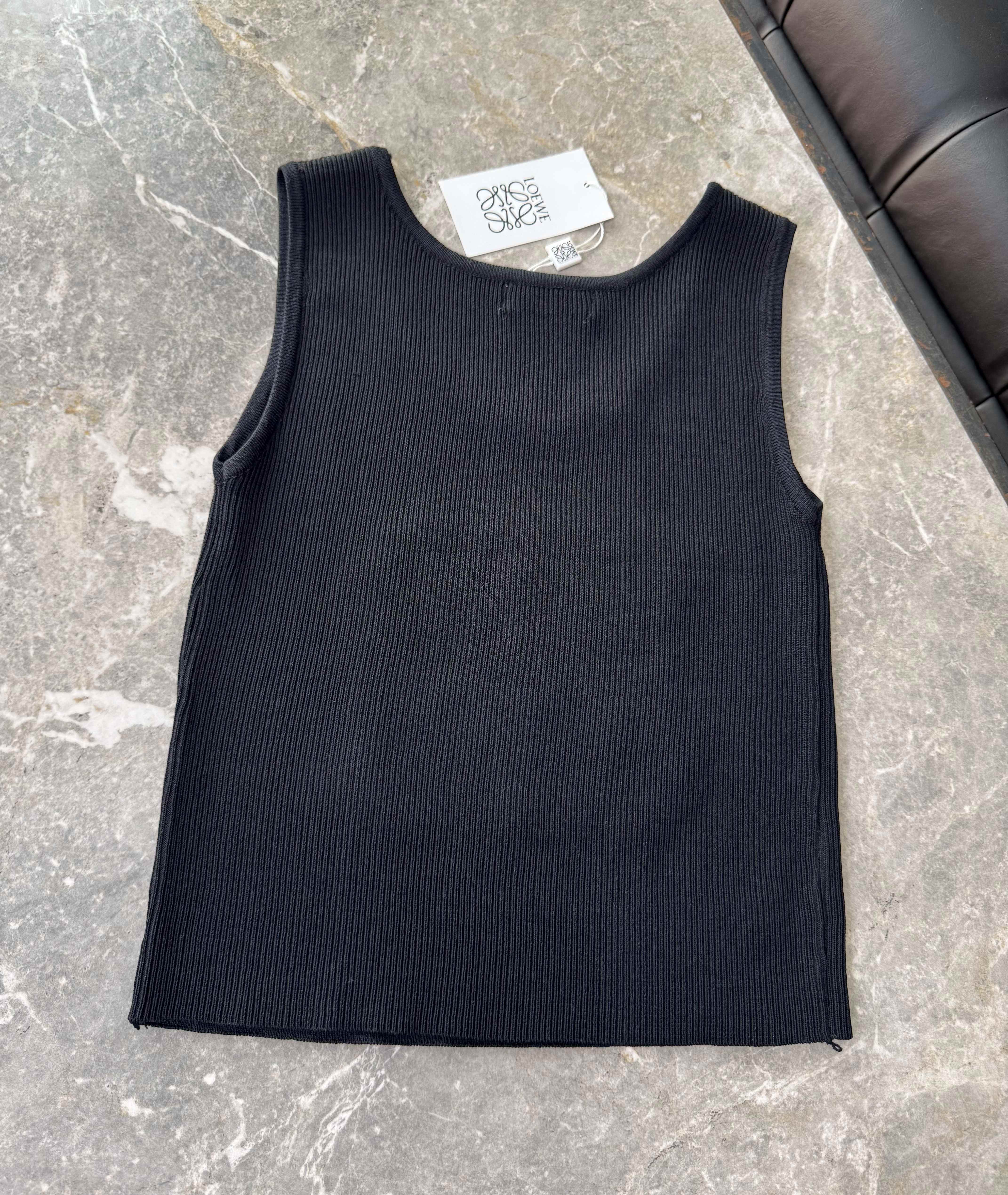 Una musculosa sin mangas que combina diseño limpio y detalle protagonista. Confeccionada en tejido acanalado suave, presenta una silueta recta y cómoda, ideal para usar sola o como base de looks más elaborados.