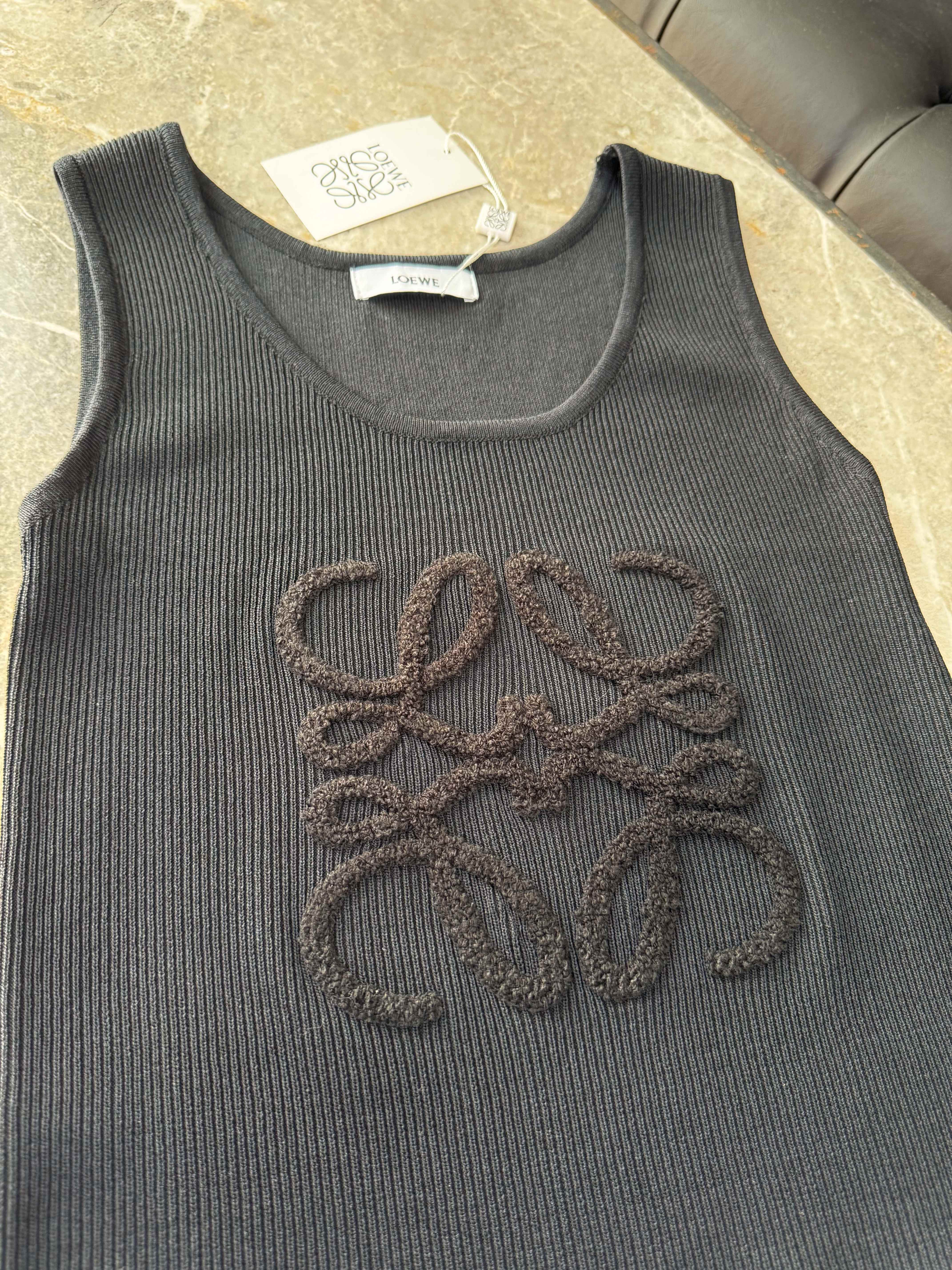 El foco está en el logo en relieve (embossed) al frente, integrado en el mismo tono de la prenda, aportando un efecto sofisticado, discreto y claramente reconocible. El escote redondeado y el corte sin mangas refuerzan su estética moderna y versátil.