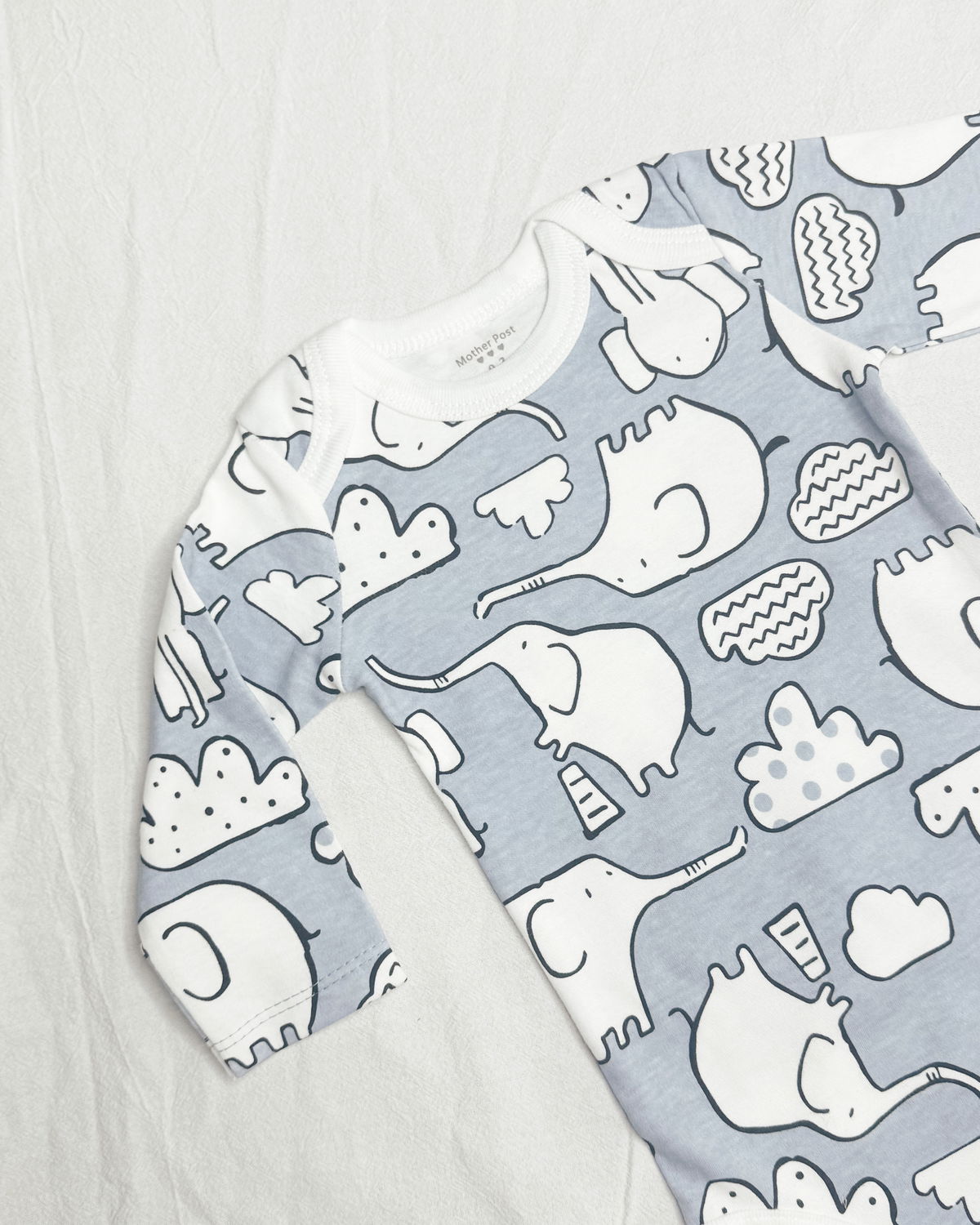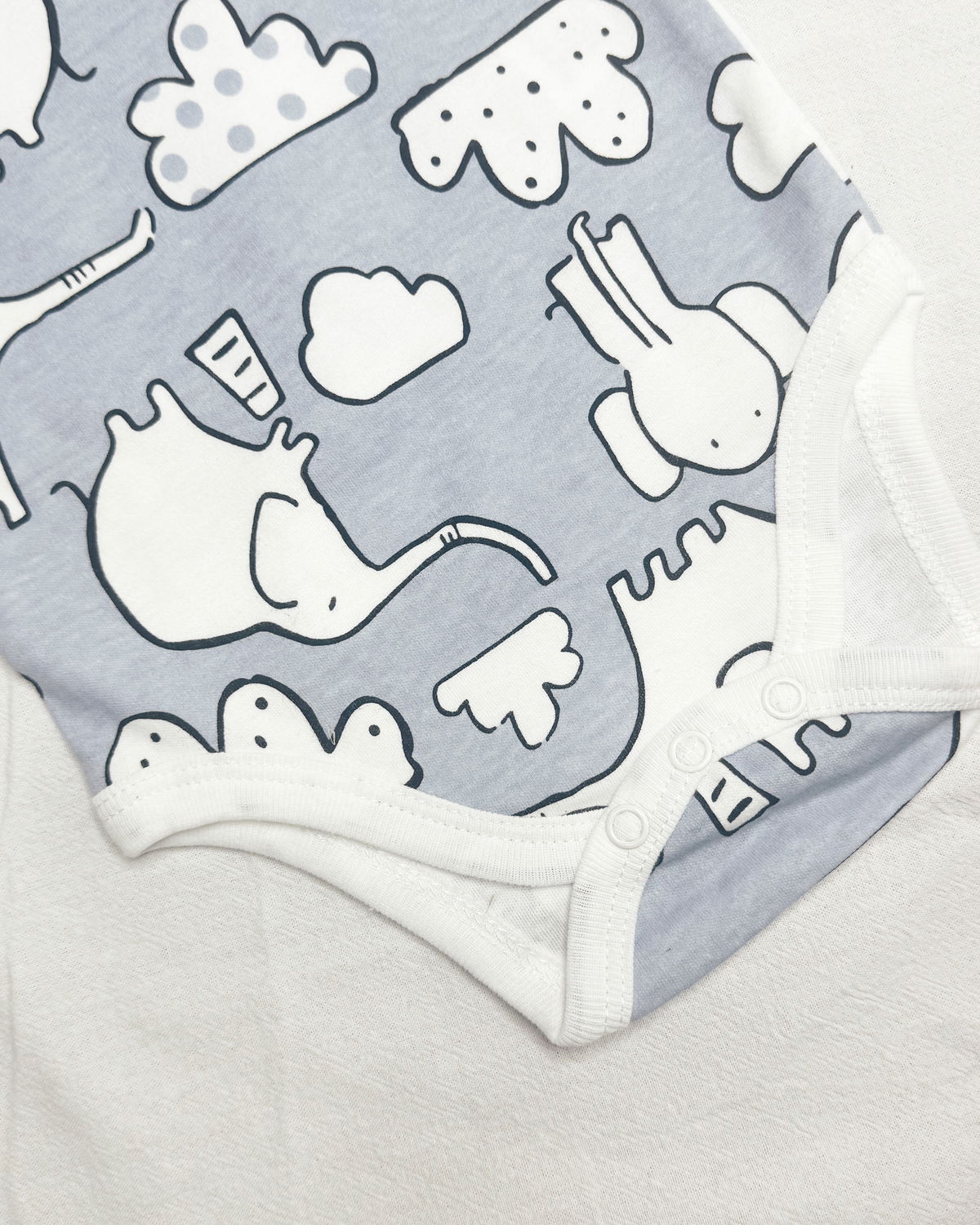 Body m/l en color celeste con un estampado de elegantes y nubes en color blanco, este modelo tan dulce es 100 % de algodón.