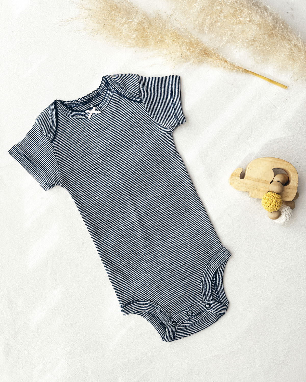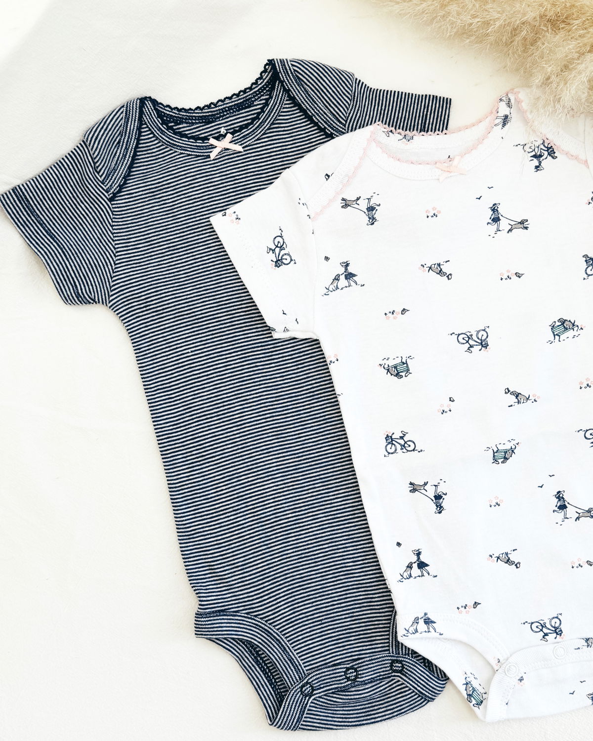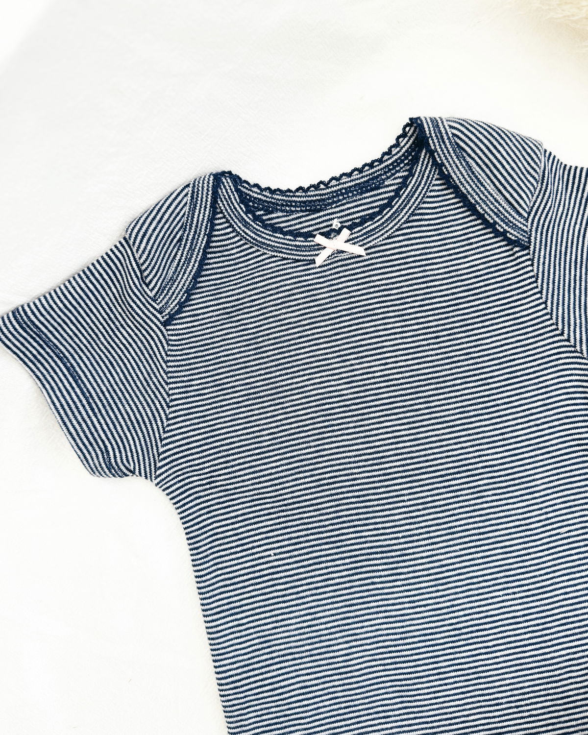 • Body rayado azul y blanco con detalle de moño rosa en el cuello