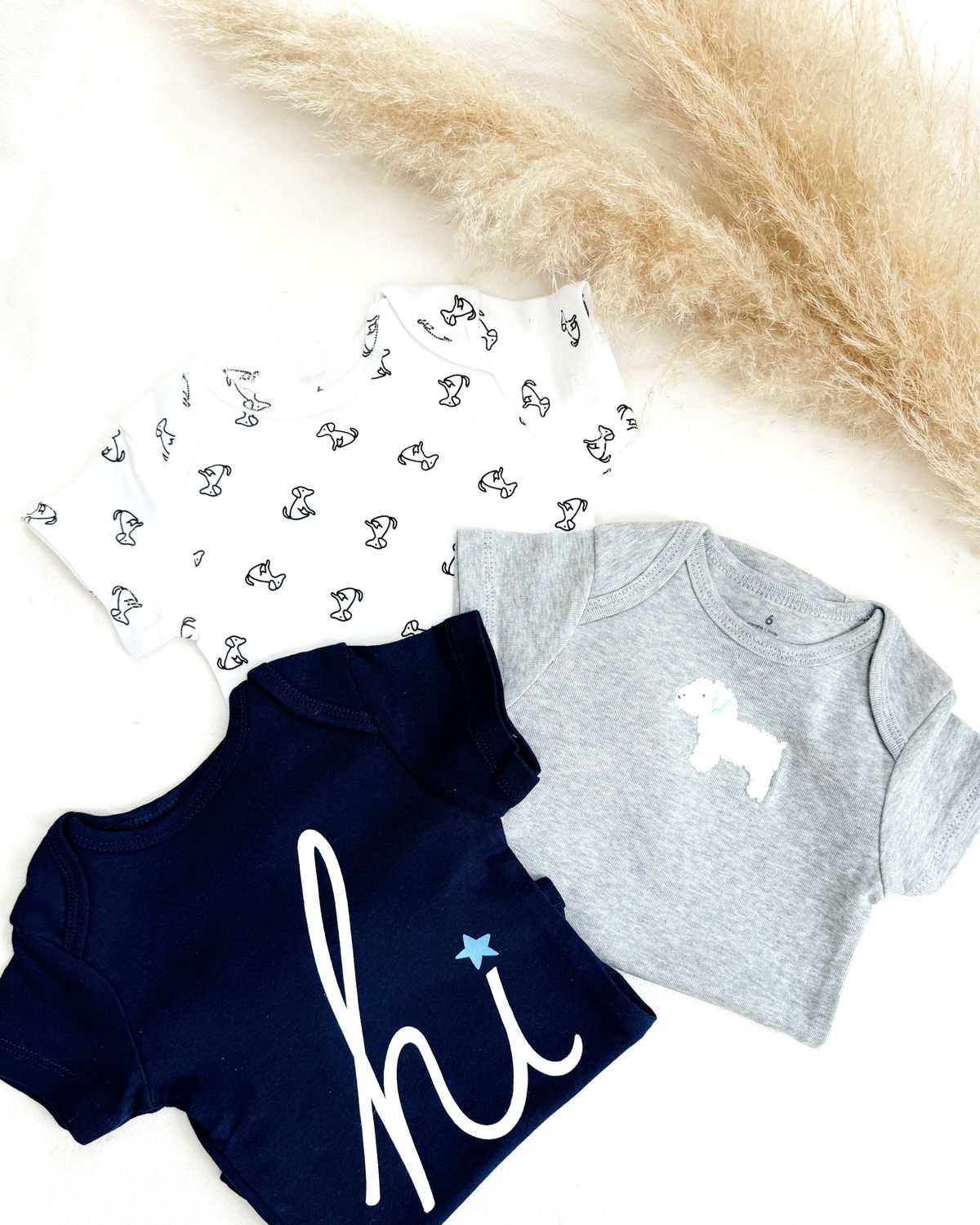 Pack de bodies x 3, este modelo m/c de algodón y tres modelos super tiernos para los amantes de los perritos: