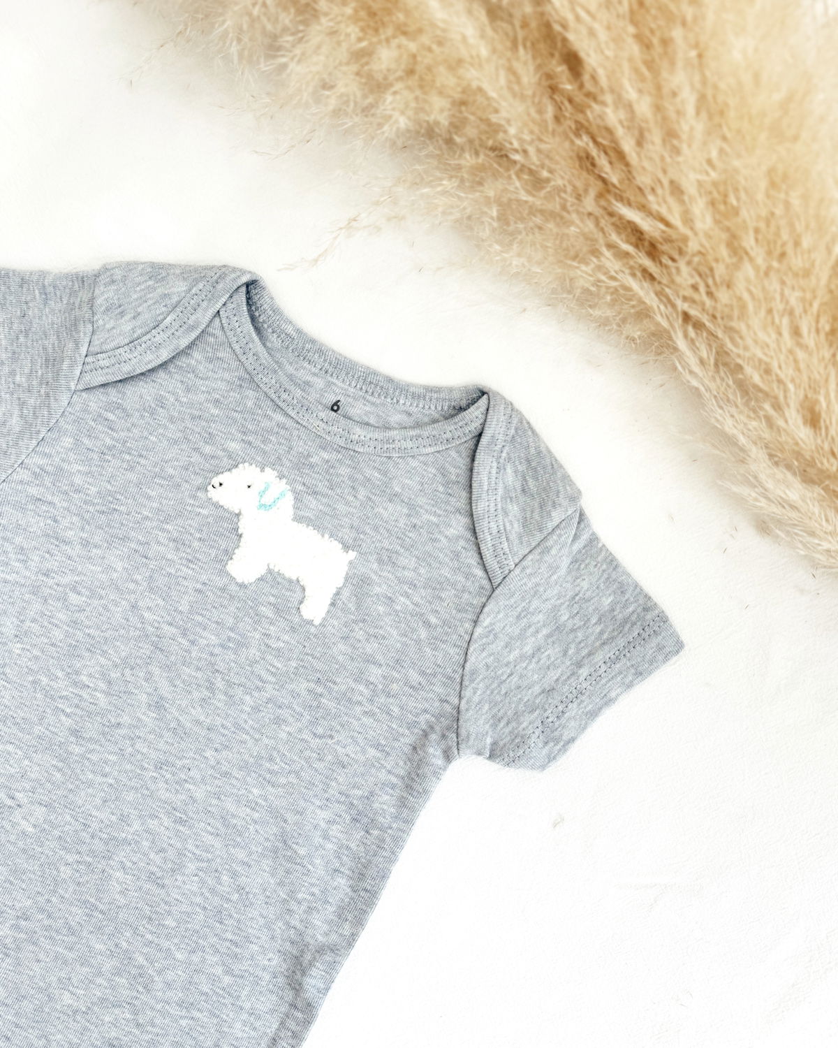 • body en blanco con un estampado en monograma de un perrito en líneas negras, súper tierno.