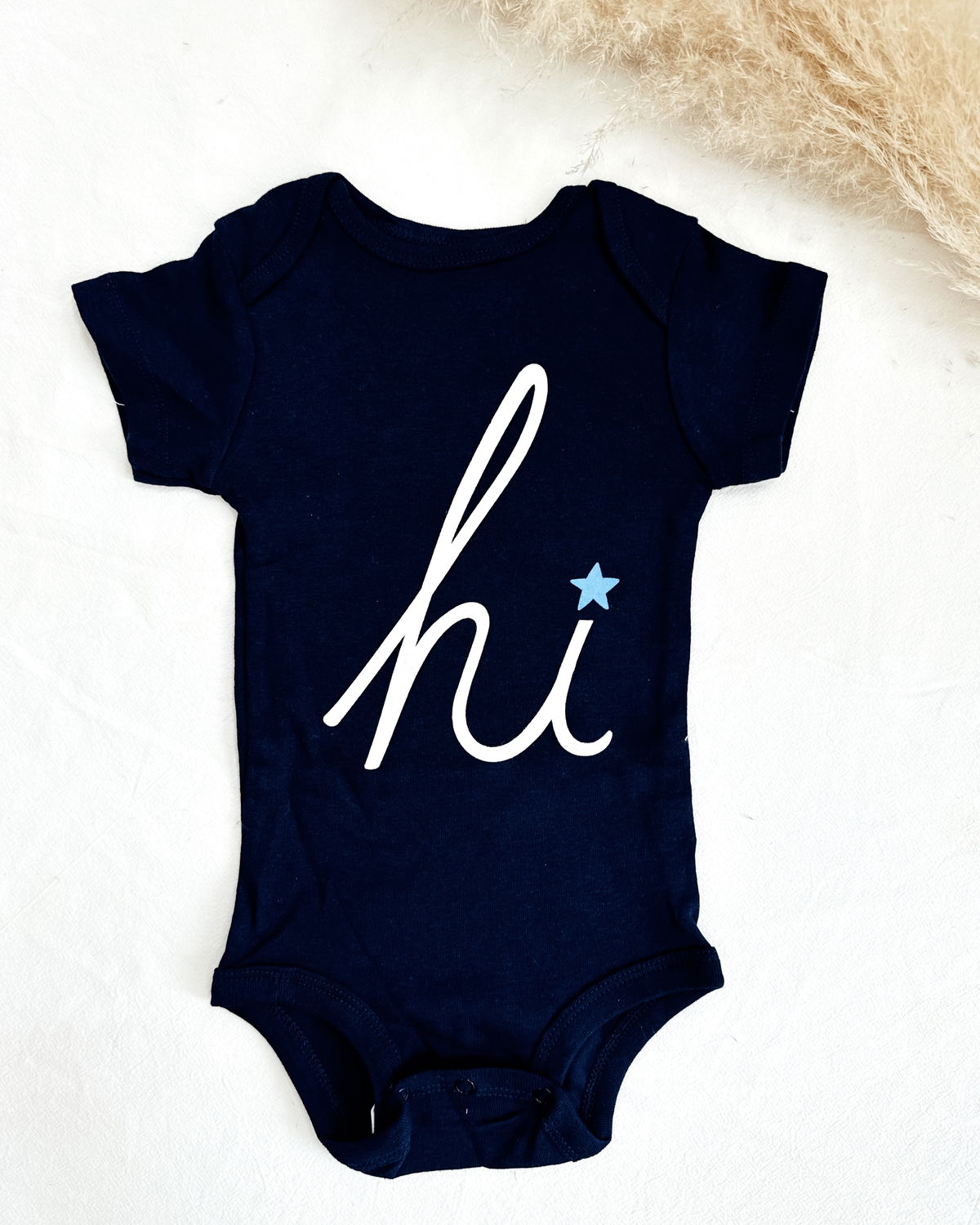 • body en azul oscuro con un estampado que dice HI y lleva el nombre de esta pack