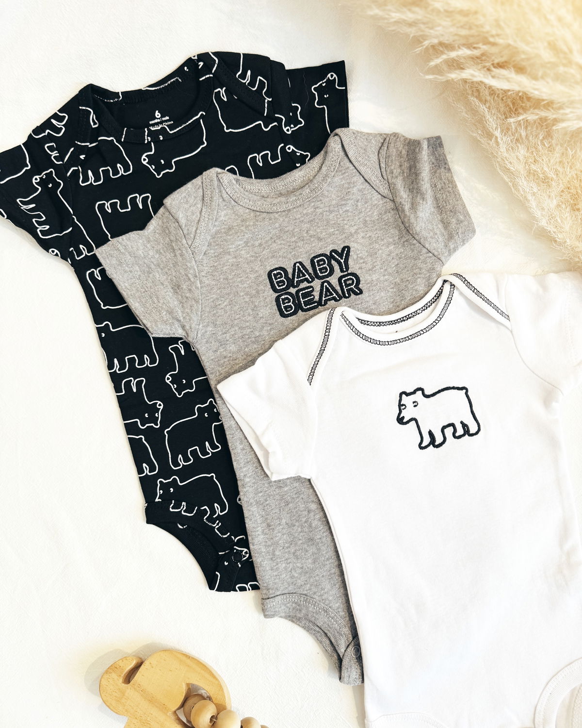 Pack de 3 bodies, todos los modelos son de algodón y en manga corta: