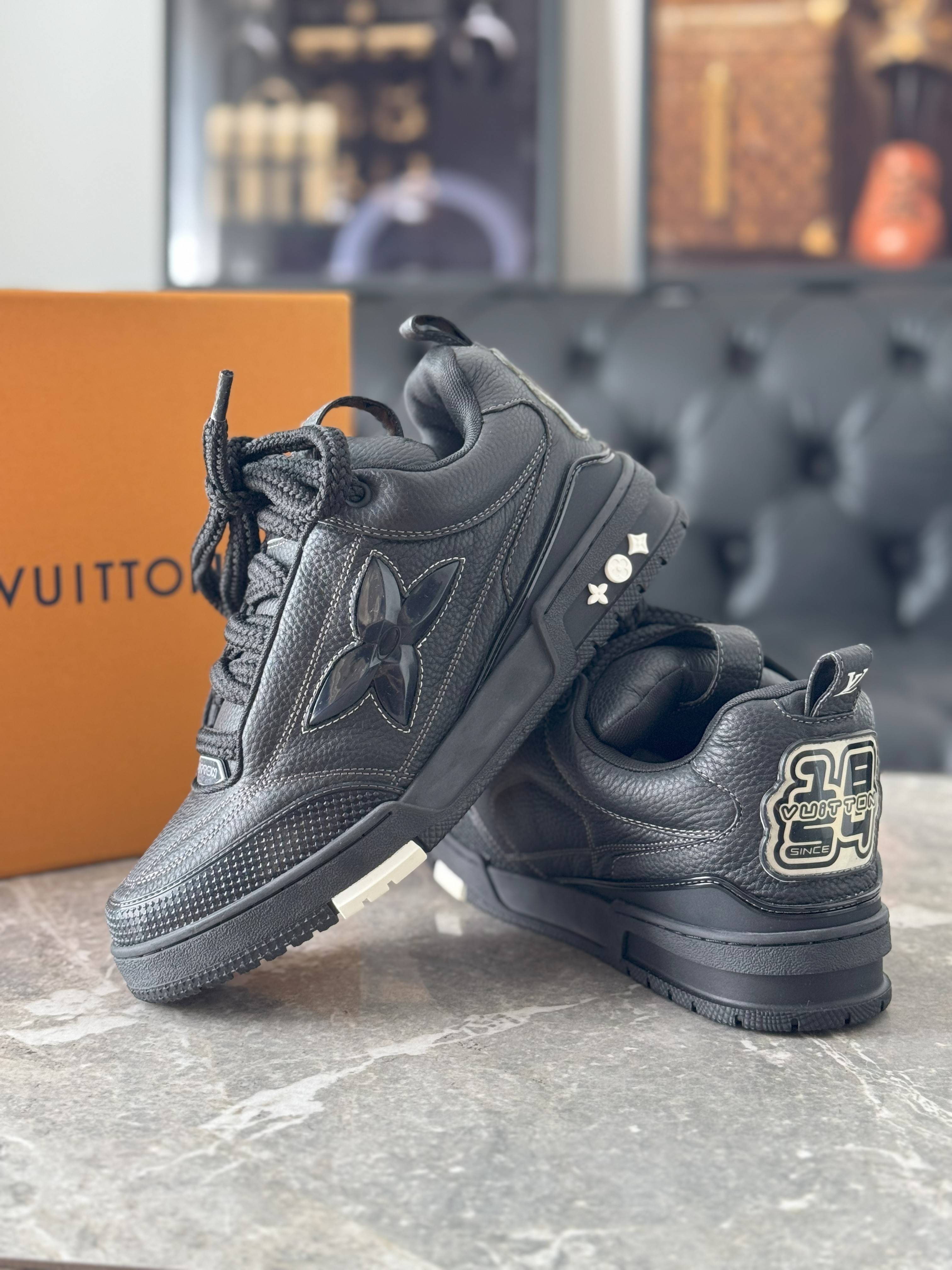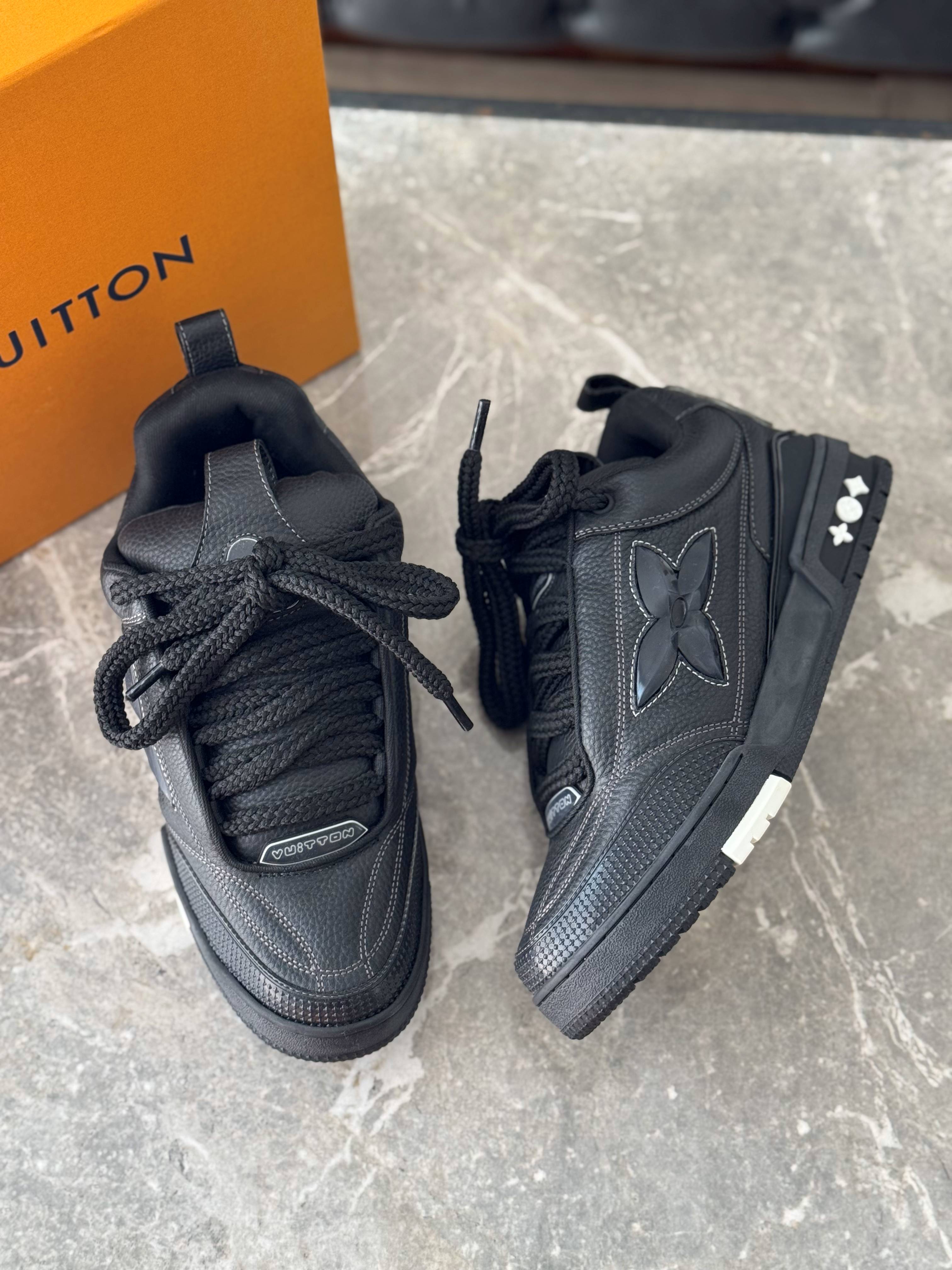 Zapatillas premium en acabado total black, confeccionadas con cuero texturado y detalles monograma que elevan el diseño. Su silueta robusta y moderna aporta carácter, mientras que los detalles en relieve suman identidad y exclusividad.
