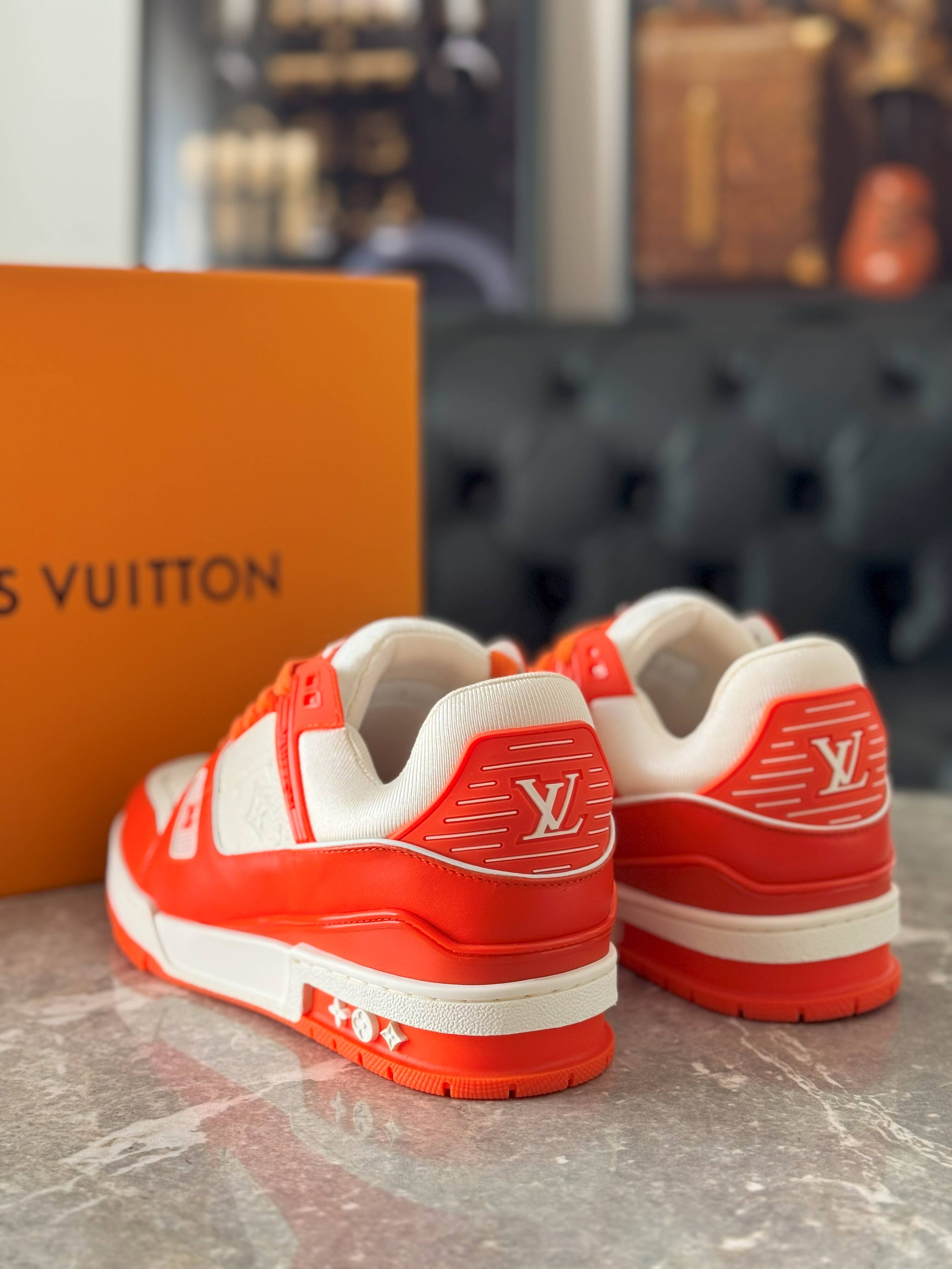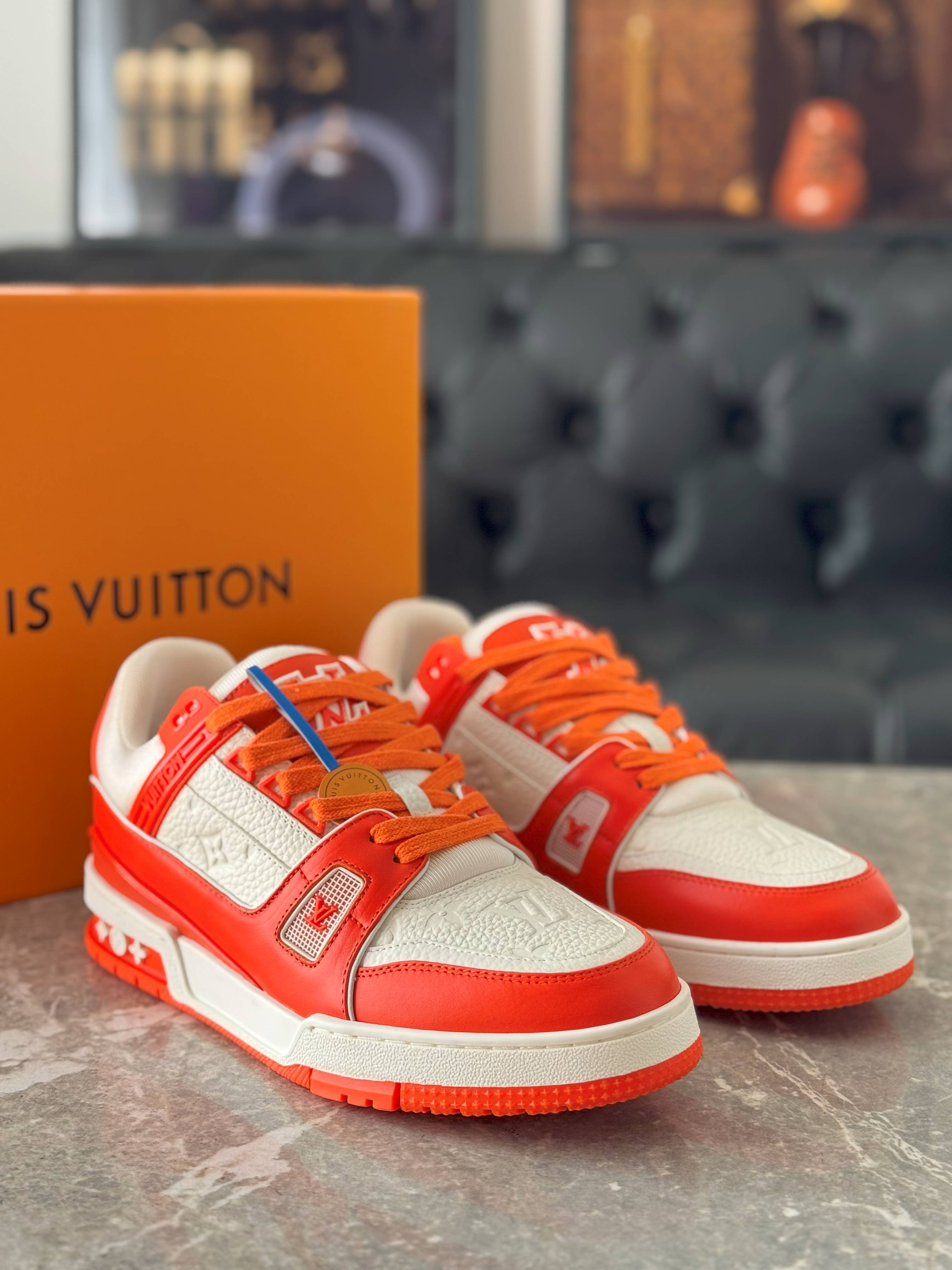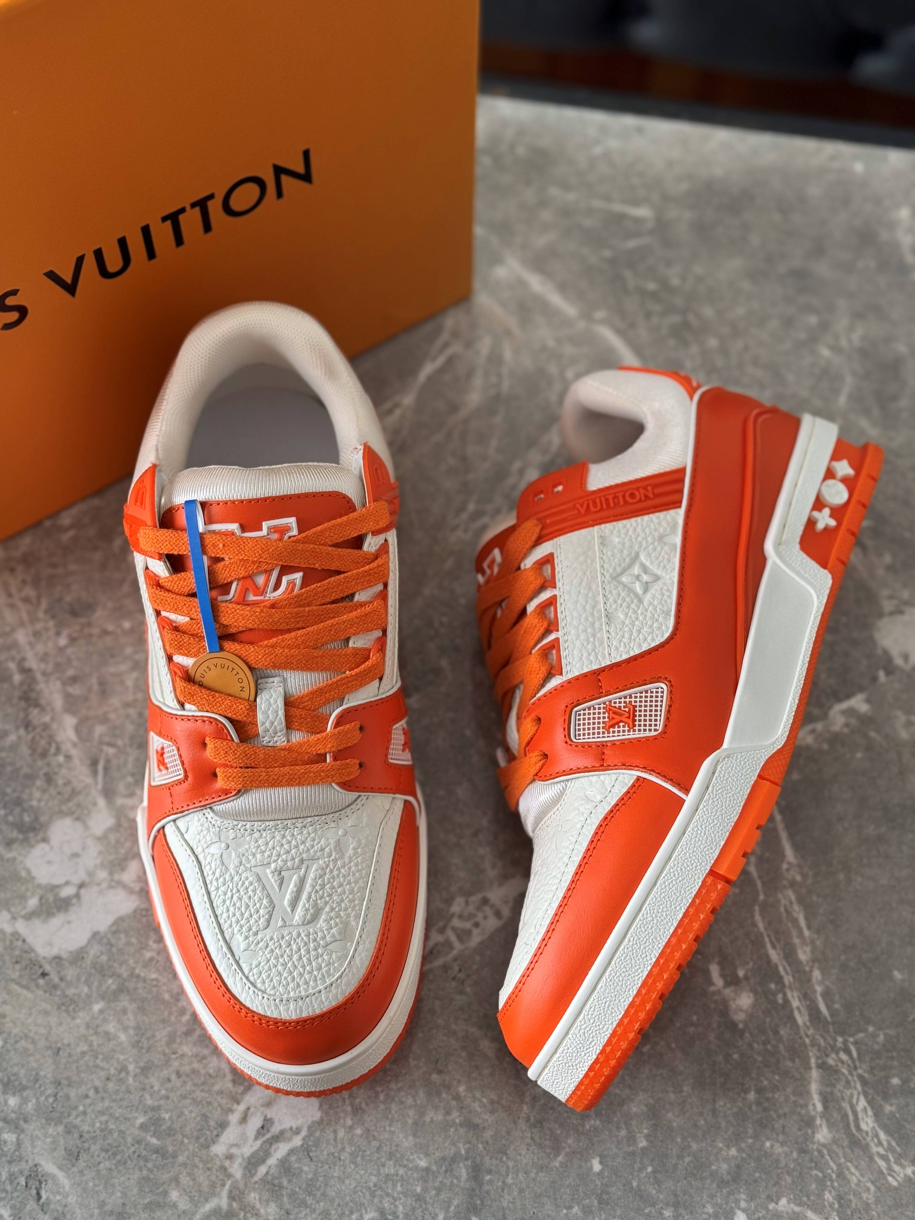 Zapatillas en combinación blanco + naranja, con mix de texturas y detalles monograma integrados al diseño. Una silueta moderna con estética deportiva premium, pensada para quienes buscan una pieza distinta, llamativa y con carácter.
