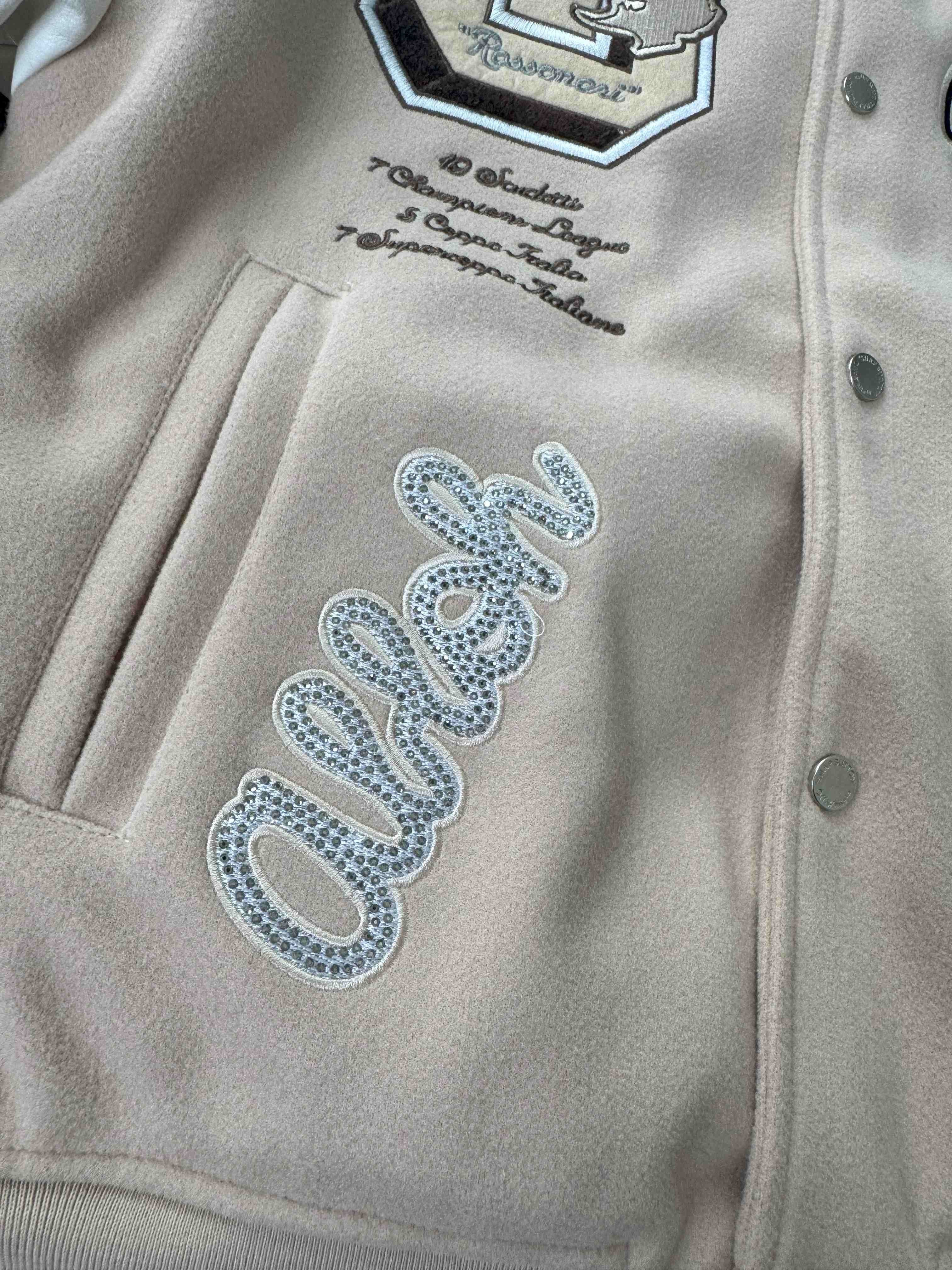 Una bomber de alto impacto visual que combina espíritu universitario con diseño urbano de lujo. Esta bomber jacket destaca por su cuerpo en paño suave y mangas con terminación leather-trimmed, logrando un contraste potente y sofisticado.