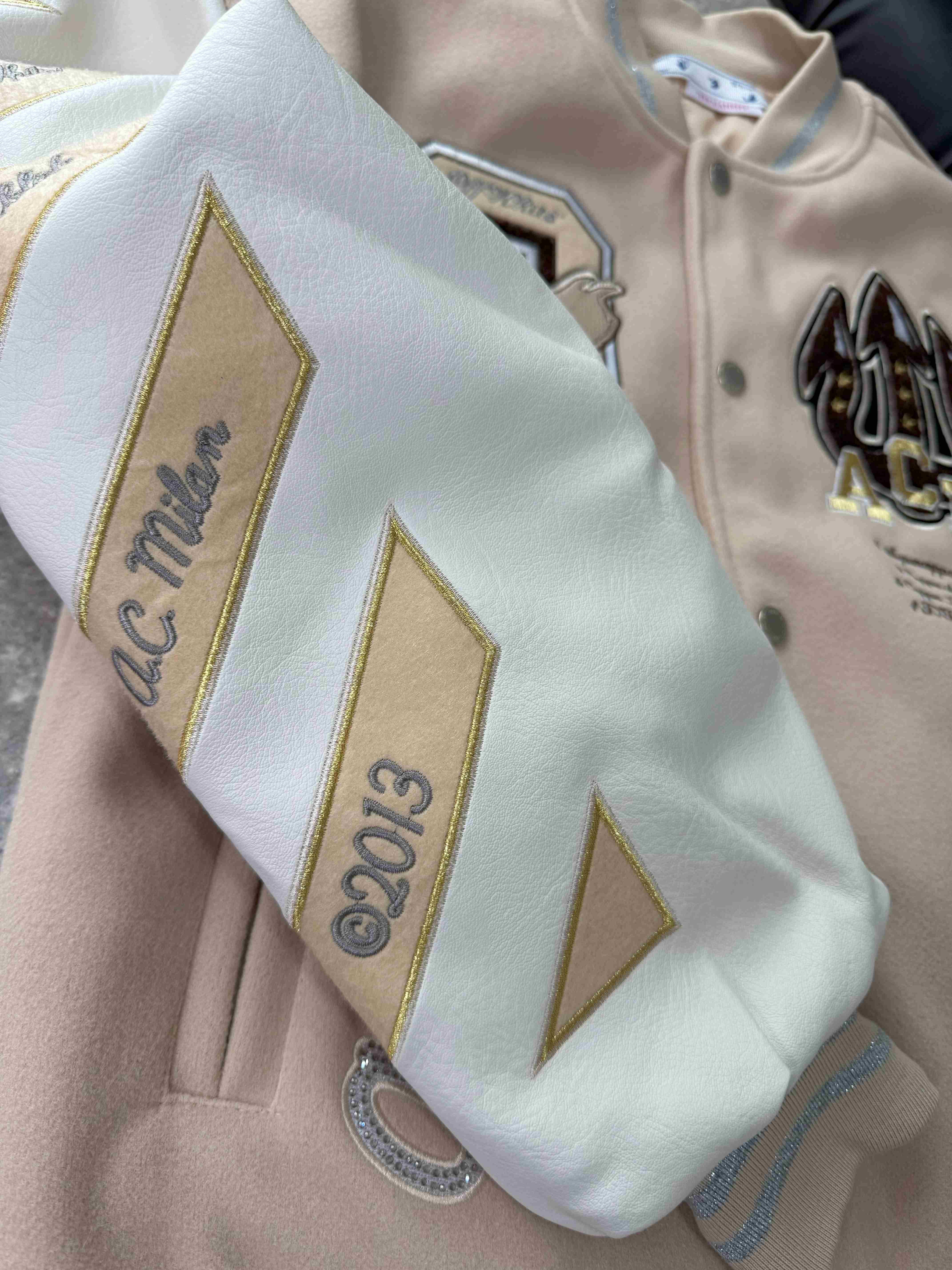 El frente presenta múltiples parches bordados de inspiración varsity, lettering trabajado y detalles gráficos exclusivos, mientras que la espalda se convierte en protagonista con un bordado XXL lleno de identidad y actitud. Los acabados en cuello, puños y cintura con rib elástico refuerzan su fit estructurado y moderno.