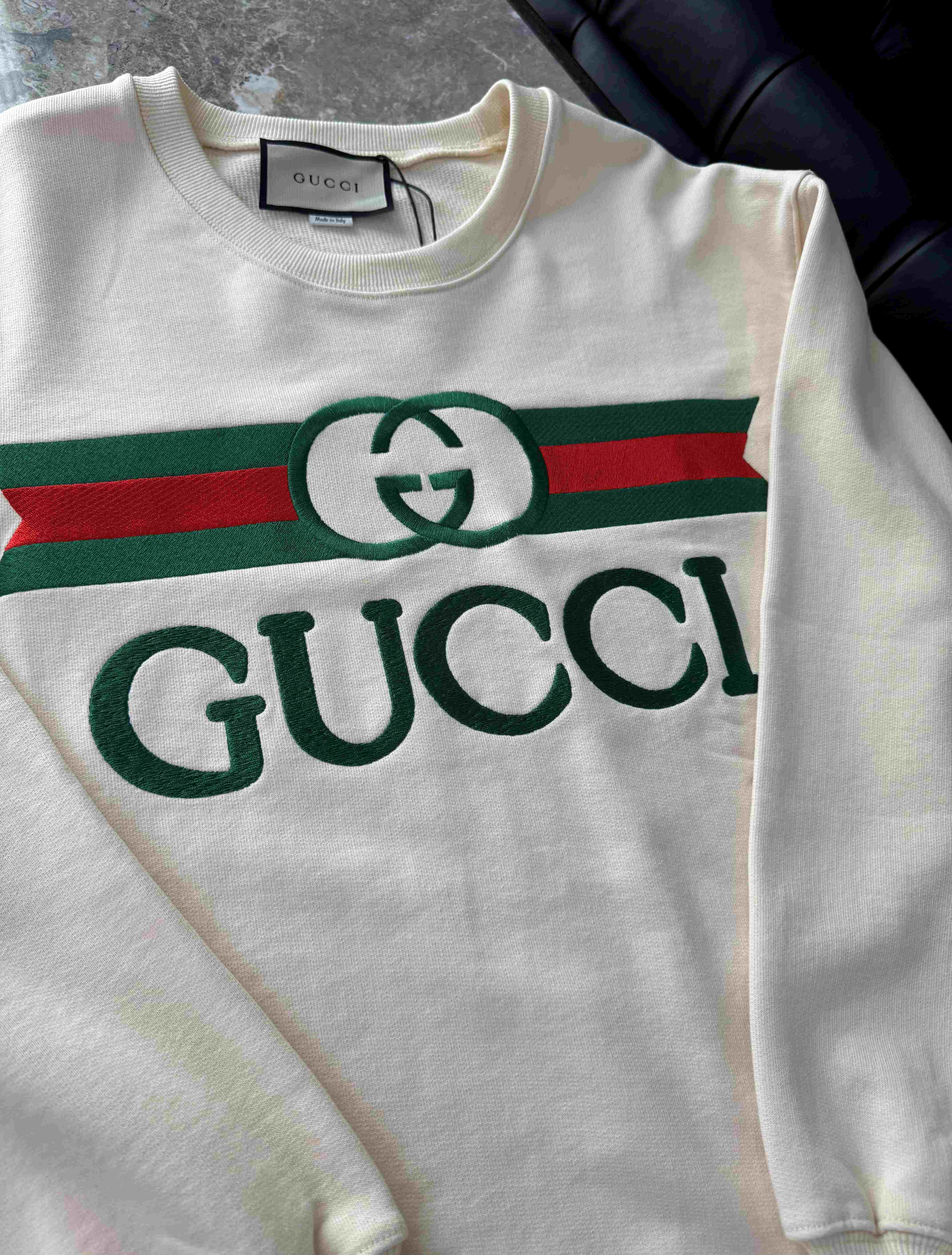Un clásico absoluto que trasciende tendencias. Este buzo presenta el emblemático logo de la maison acompañado por la icónica franja verde y roja, logrando una pieza elegante, reconocible y siempre vigente.